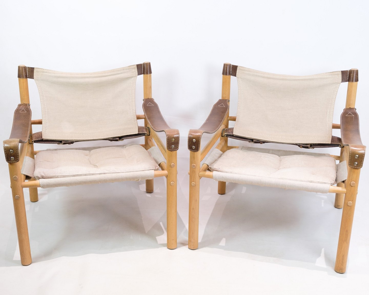 Text zugänglich auf Dänische: Sæt Af 2 Safaristole - Model Sirocco - Eg & Canvas - Arne Norell - Norell Möbel AB - 1970erne
