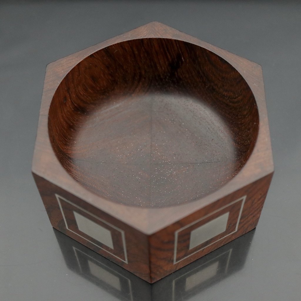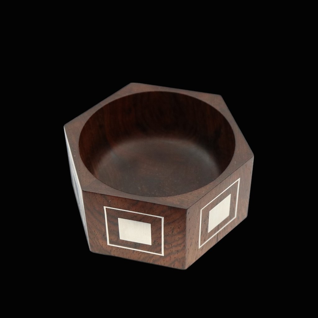 Text zugänglich auf Dänische: Hans Hansen. LIlle skål i palisander med indlagt sterling sølv.