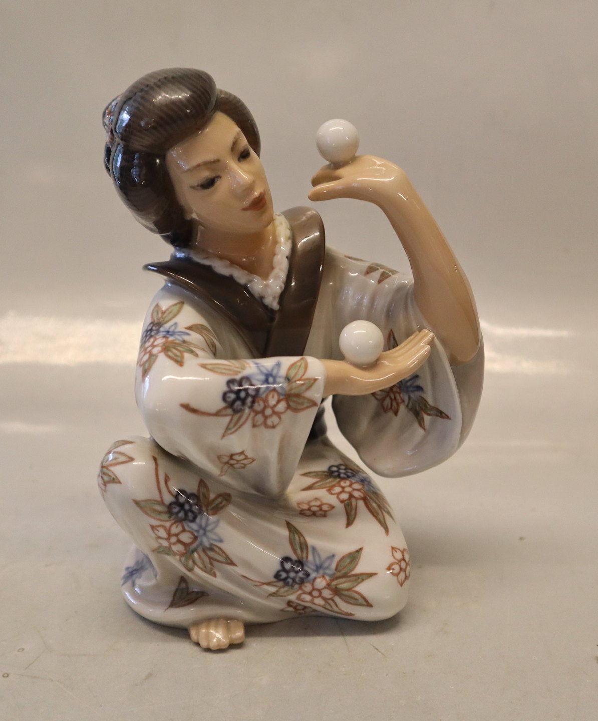 Dahl Jensen 1326 Japansk jonglør 18 cm. Mærket med kongelig krone og DJ Copenhagen 1. sortering i hel og fin stand.