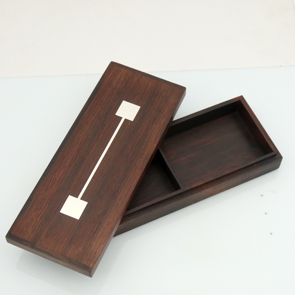 Text zugänglich auf Dänische: Hans Hansen. Æske i palisander med indlagt sterling sølv.