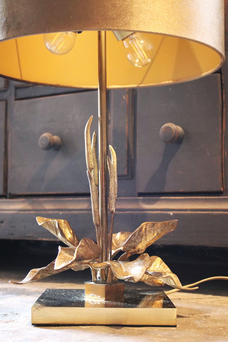 Dekorativ bordlampe fra 50/60érne i forgyldt messing og bronze fra Maison Jansen i Hollywood Regency style.