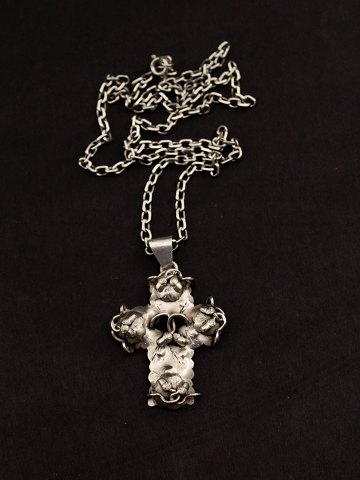 Gustav Adolf 830 sølv kors 4,8 x 3,9 cm. med kæde emne nr. 611038