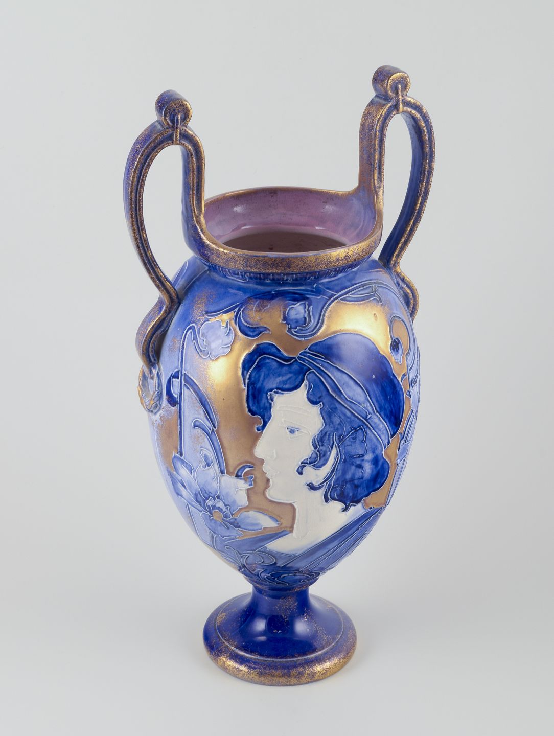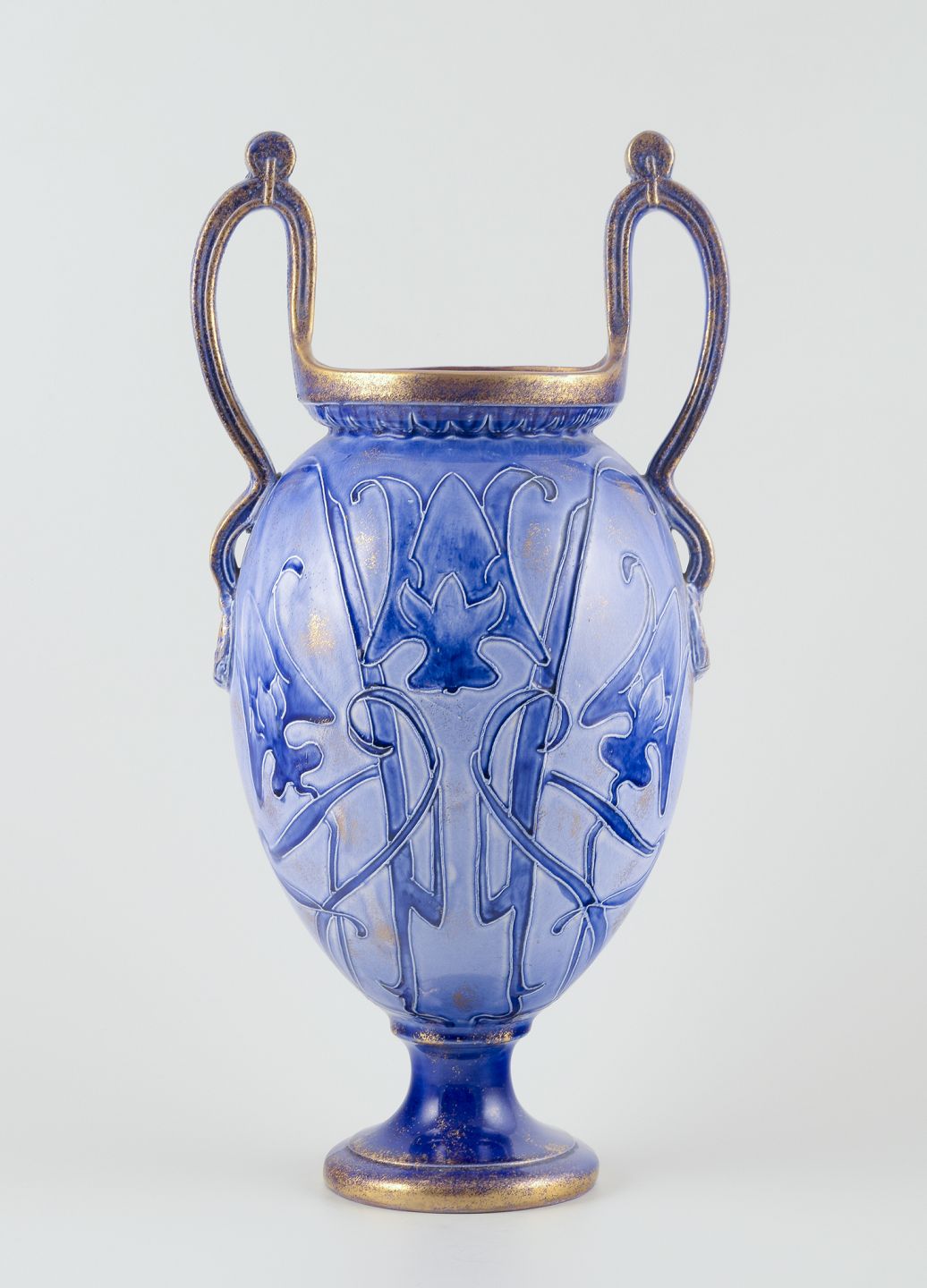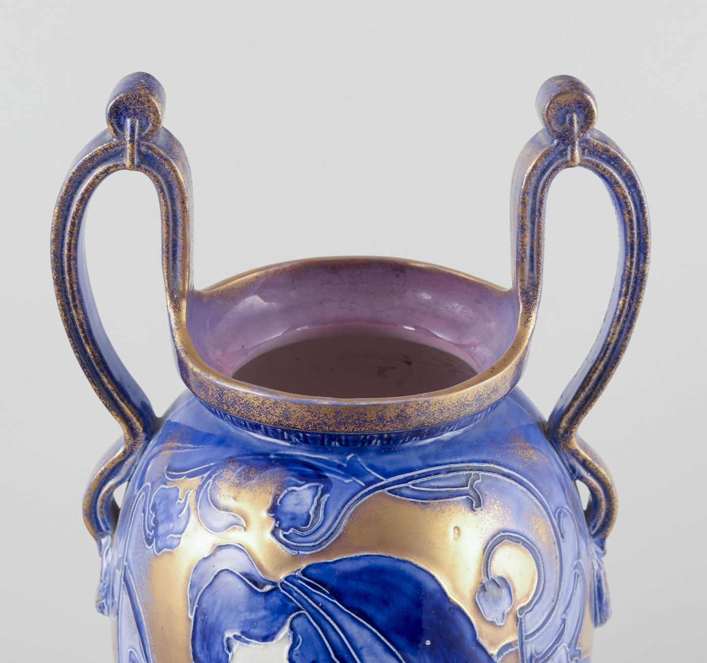 Stor Art Nouveau vase med to hanke. Fajance.