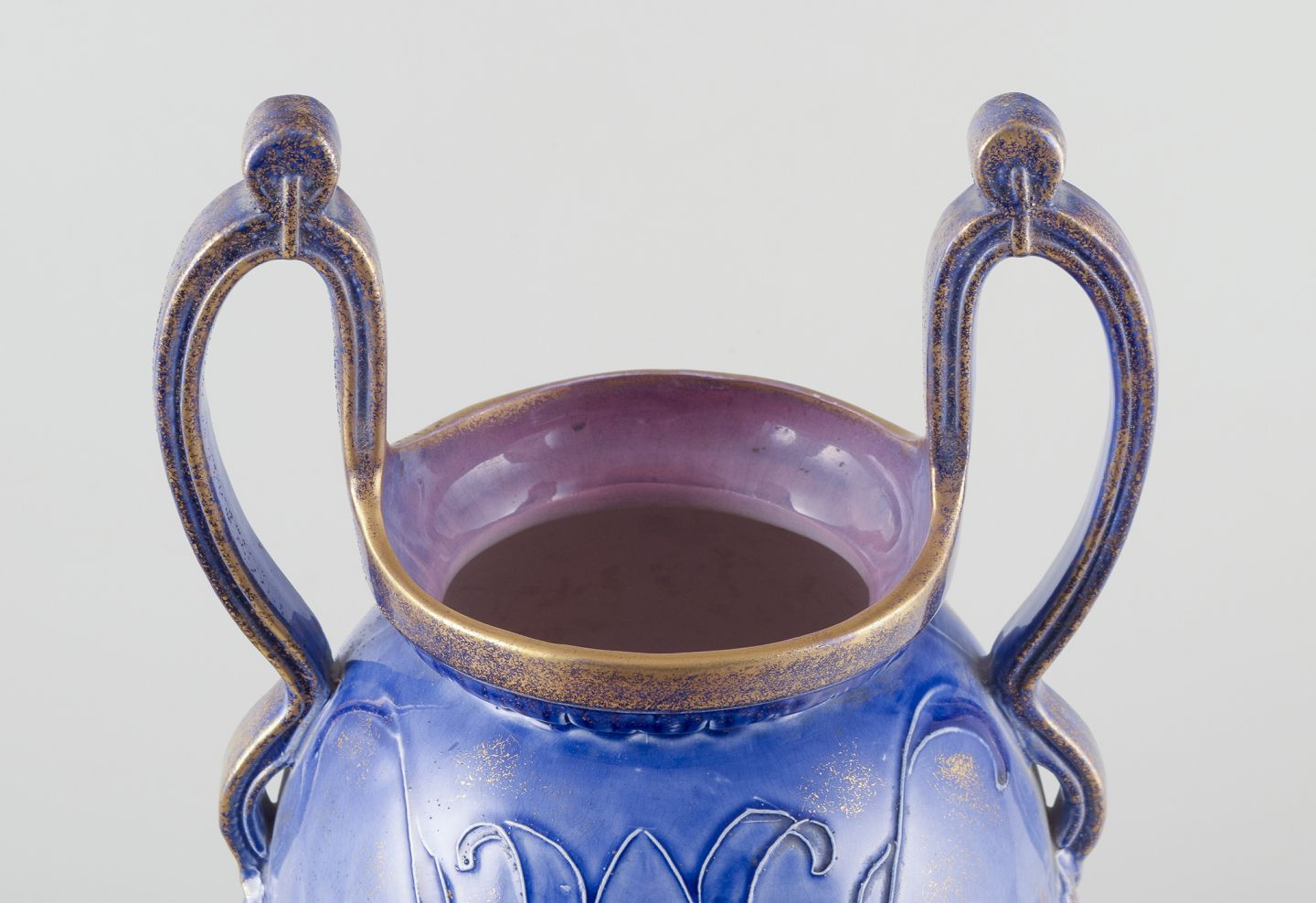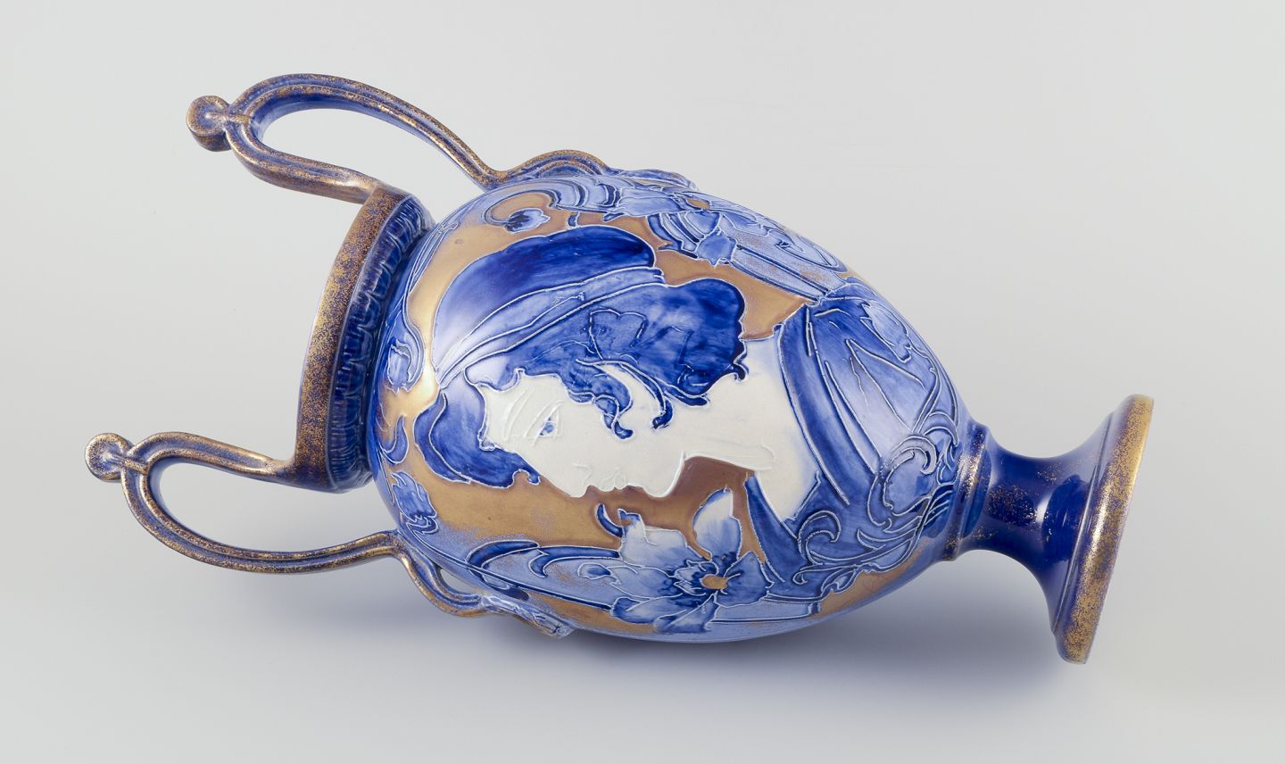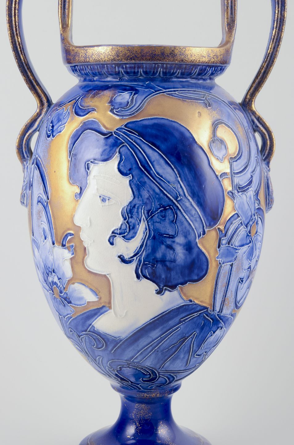 Stor Art Nouveau vase med to hanke. Fajance.