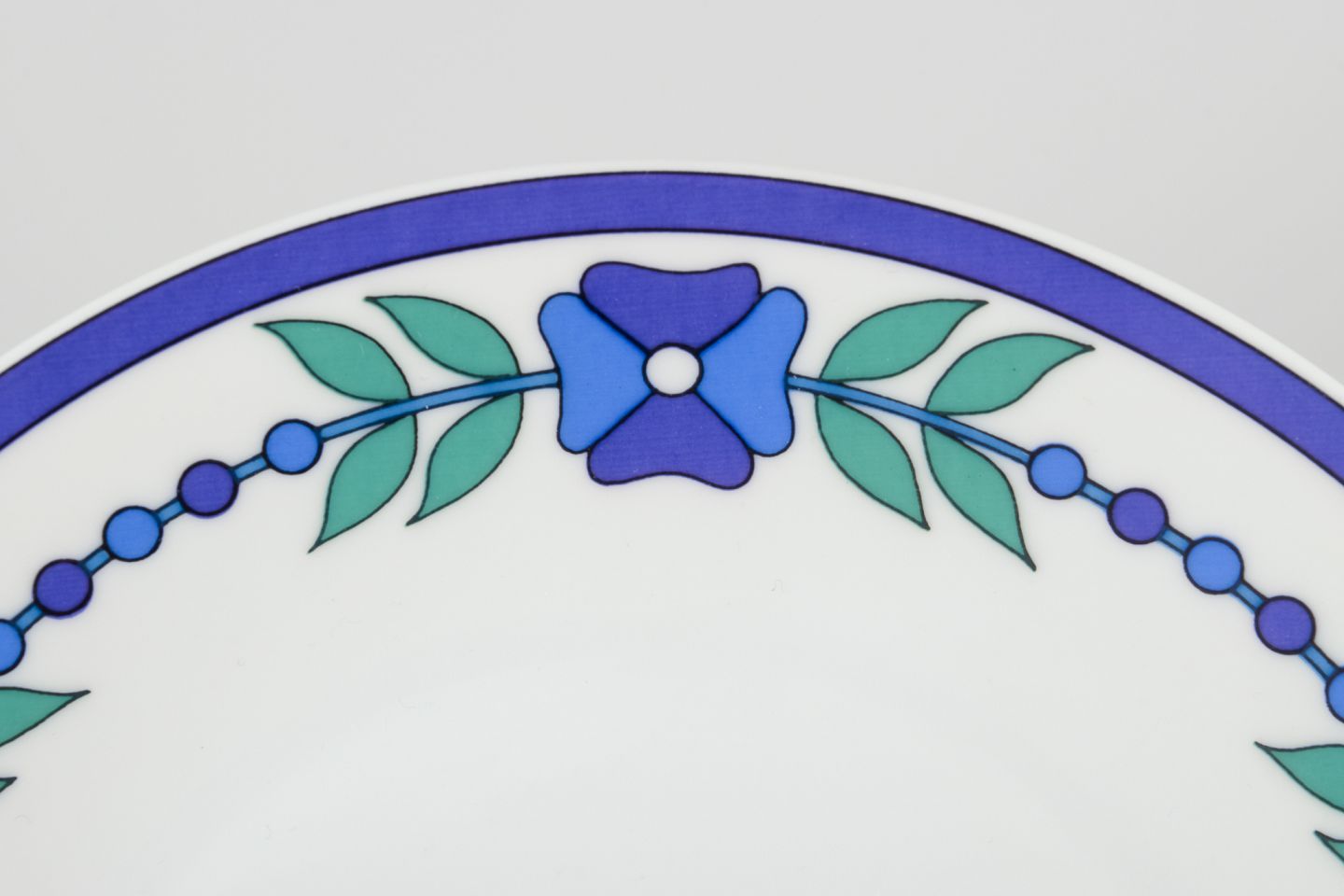 Emilio Pucci (1914–1992) var en italiensk modeskaber, kendt for sine farverige, grafiske mønstre og elegante silhuetter. Hans designs blev synonym med glamour og jetset-stil i 1960’erne og 70’erne. For Rosenthal Studio-Linie overførte Pucci sit ikoniske mønsterunivers til porcelæn, hvilket resulterede i livlige og dekorative service- og designobjekter.