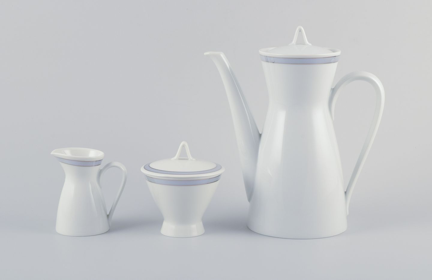 Kaffesæt af porcelæn bestående af kaffekande, sukkerskål og flødekande. Form 2000.
