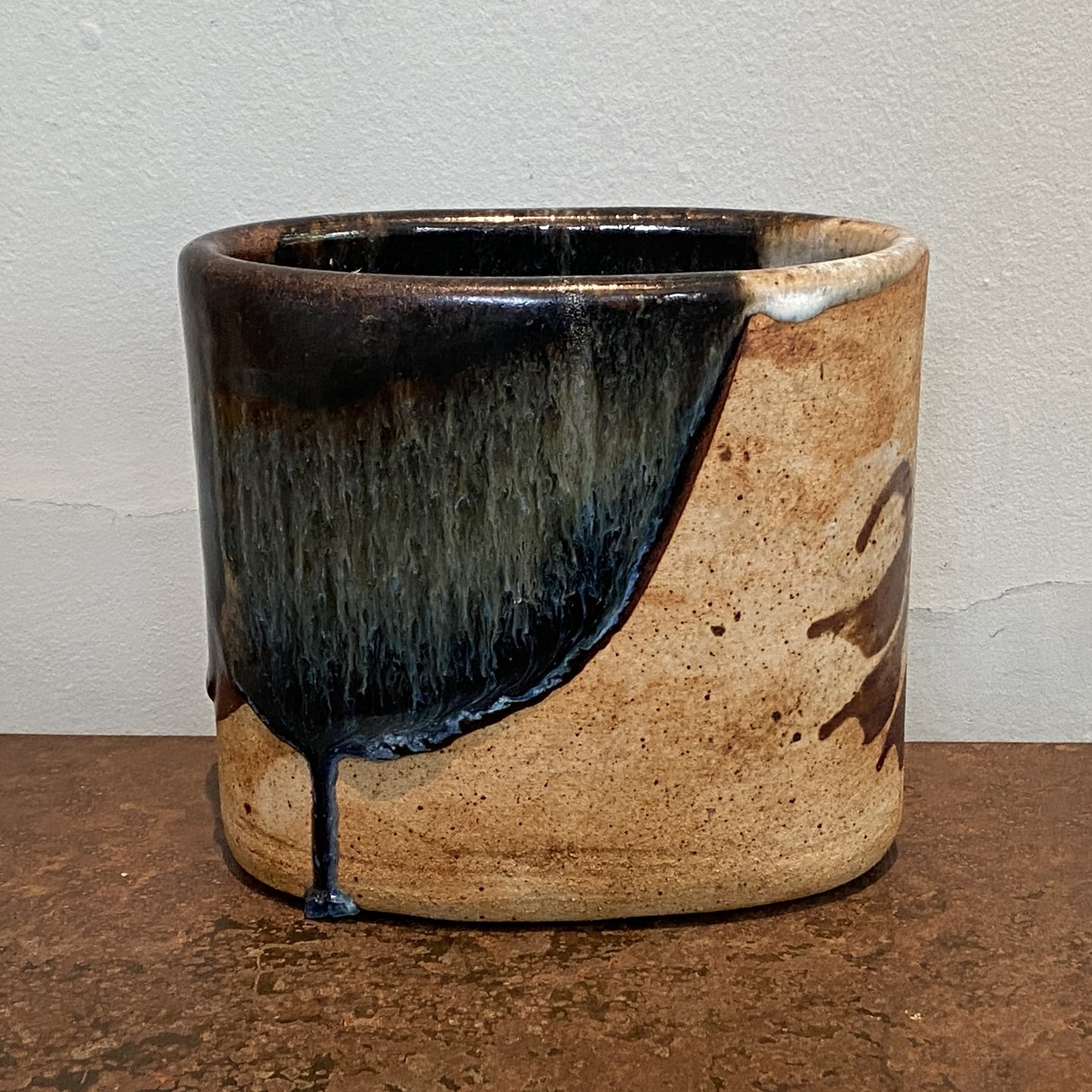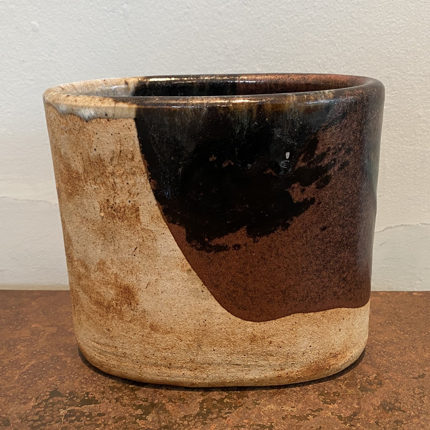 Oval vase delvist glaseret vase af stentøj.
