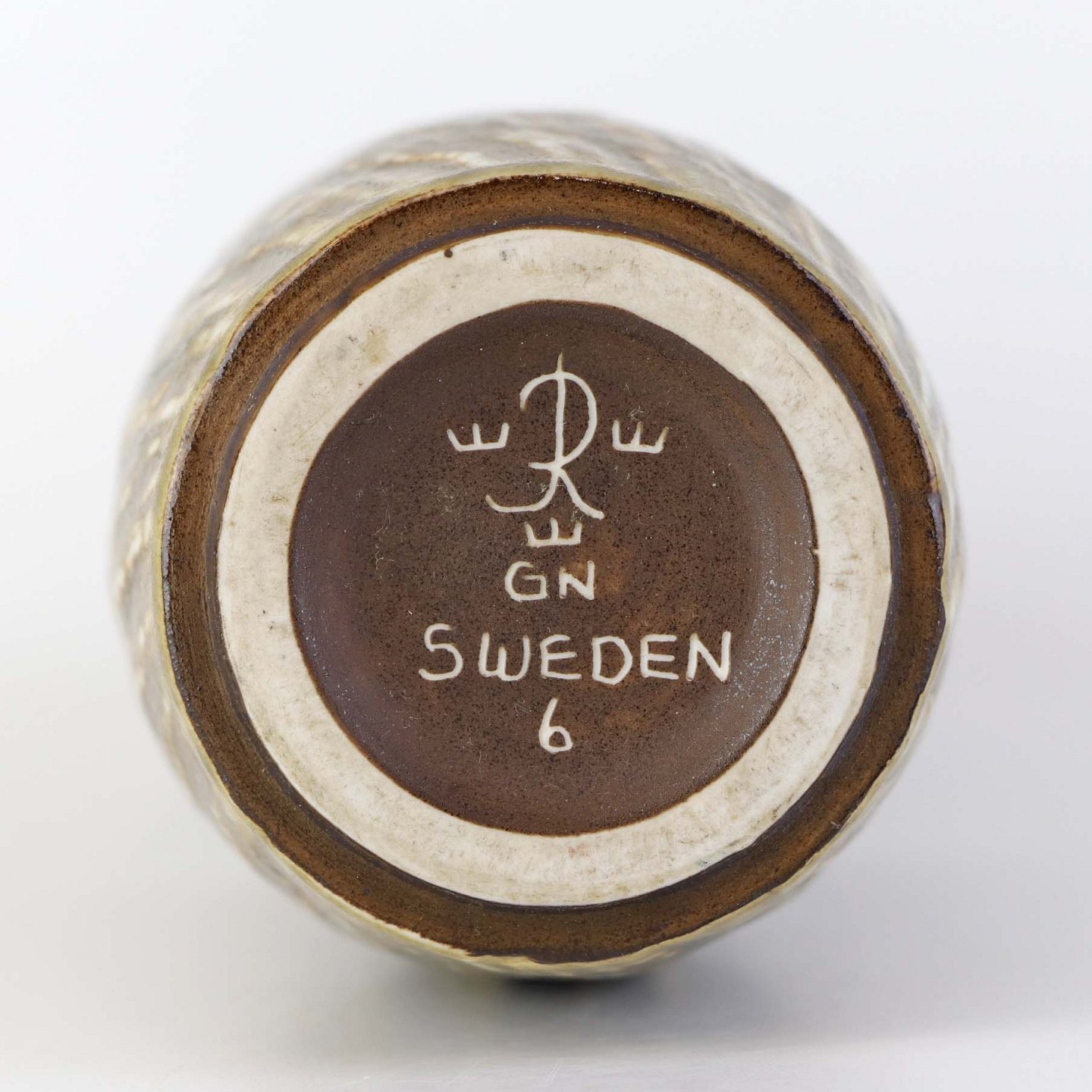 Cylinderformet vase i stentøj med glasur i hvide og gylden brune nuancer. Nr. 6