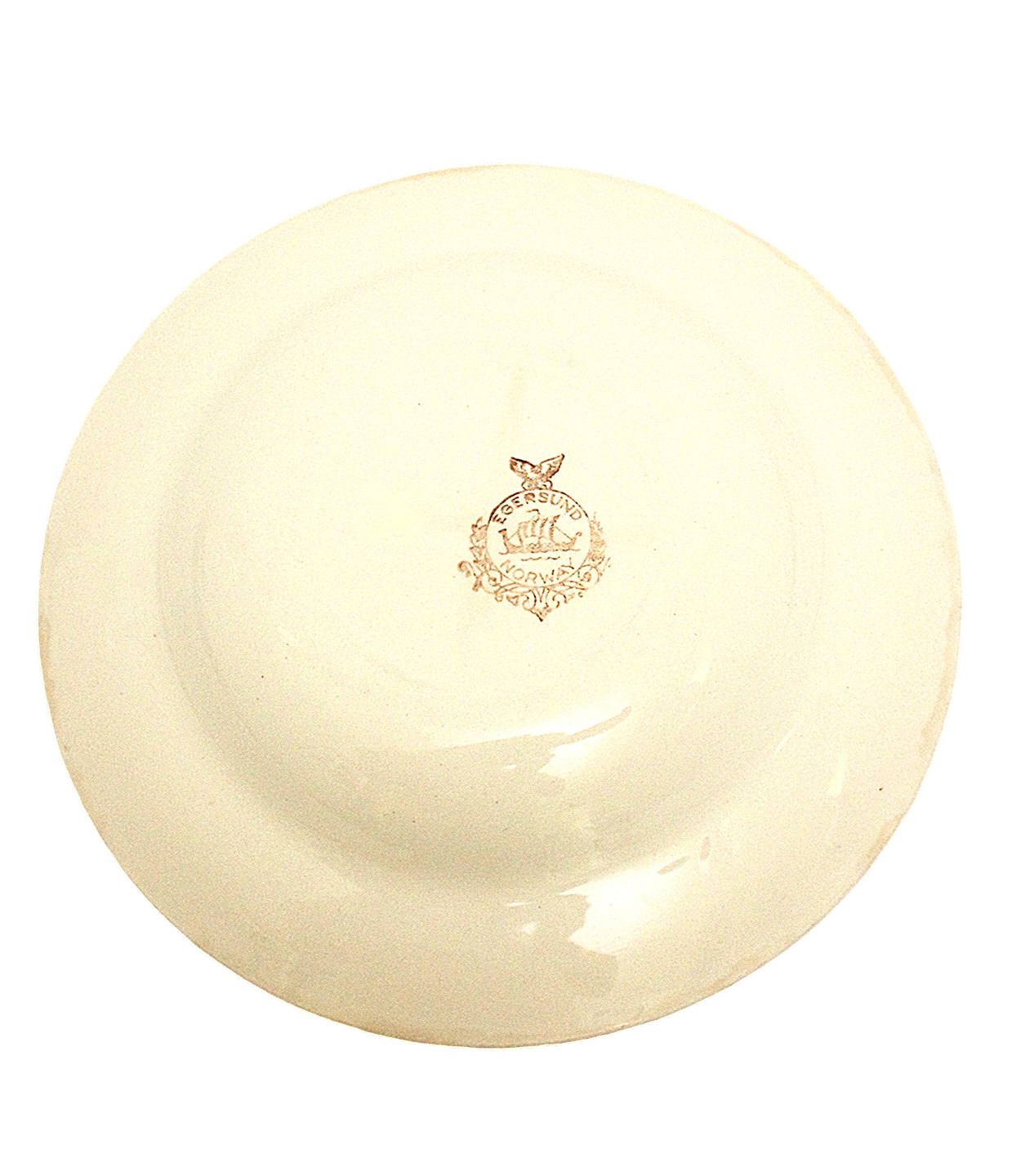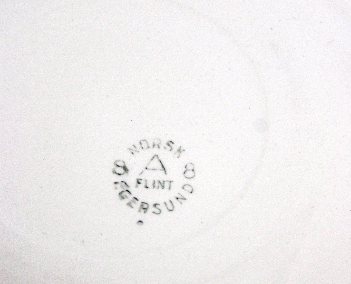 Text zugänglich auf Dänische: Egersund, Norway, Blå Fasan. Dyb middagstallerken. Fajancestel med blomster og 2 fasaner. Der er farveforskel og forskellige stempler alt efter, hvornår de er produceret. Diameter 22 cm. Højde 3,5 cm. Almindeligt brugsslid, men ingen krakeleringer. Pris: 75 kr. stk. Lager: 2
