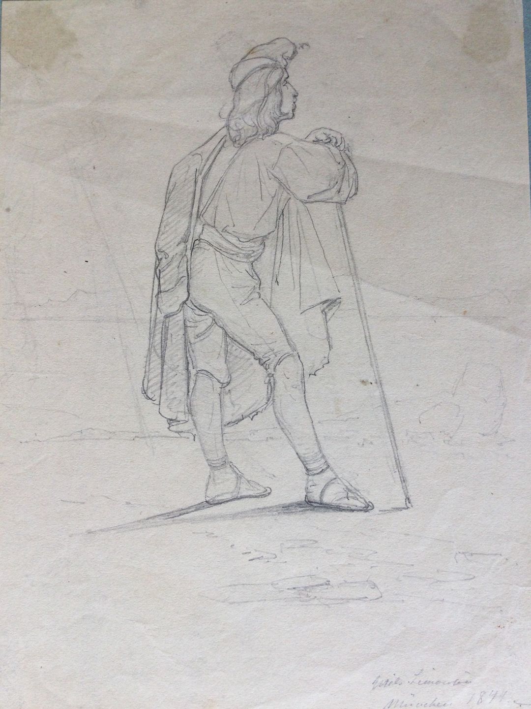Text zugänglich auf Dänische: Tegning af Niels Simonsen - Stående arabisk mand 1844.