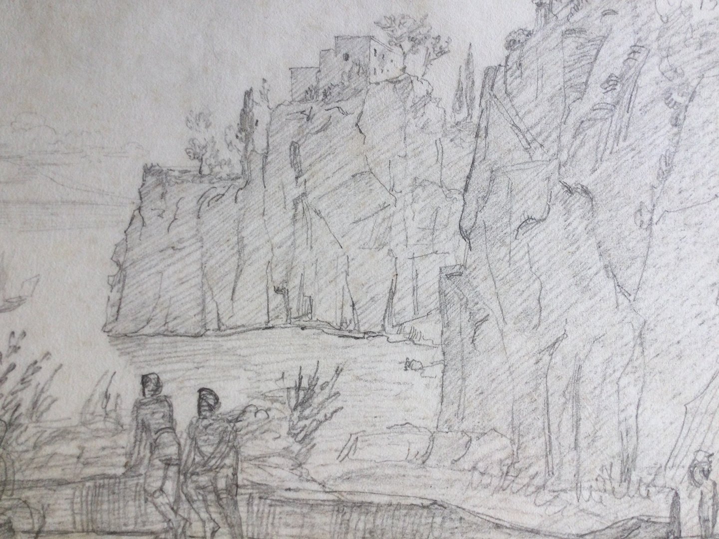 Text zugänglich auf Dänische: Tegning - Personer ved klippeformation.
