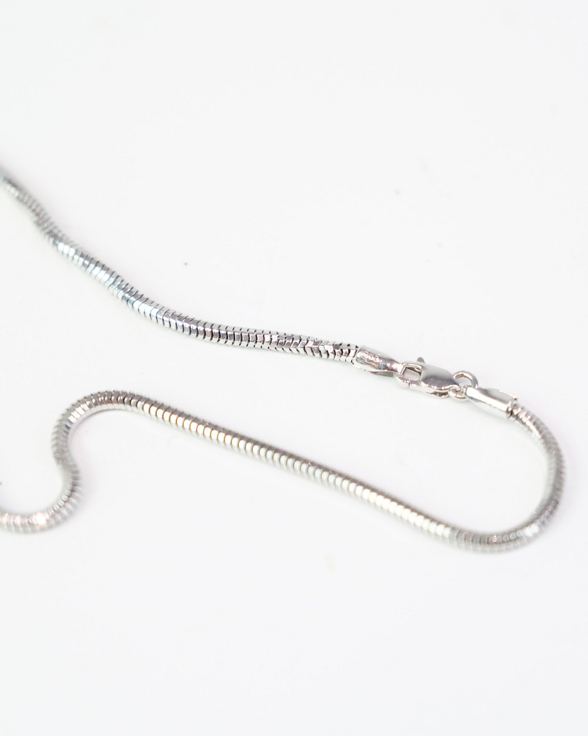 Slangekæde i 14 kt. hvidguld, stemplet 585. Med stor karabinlås. L: 53 cm. Elegant klassisk halskæde.
