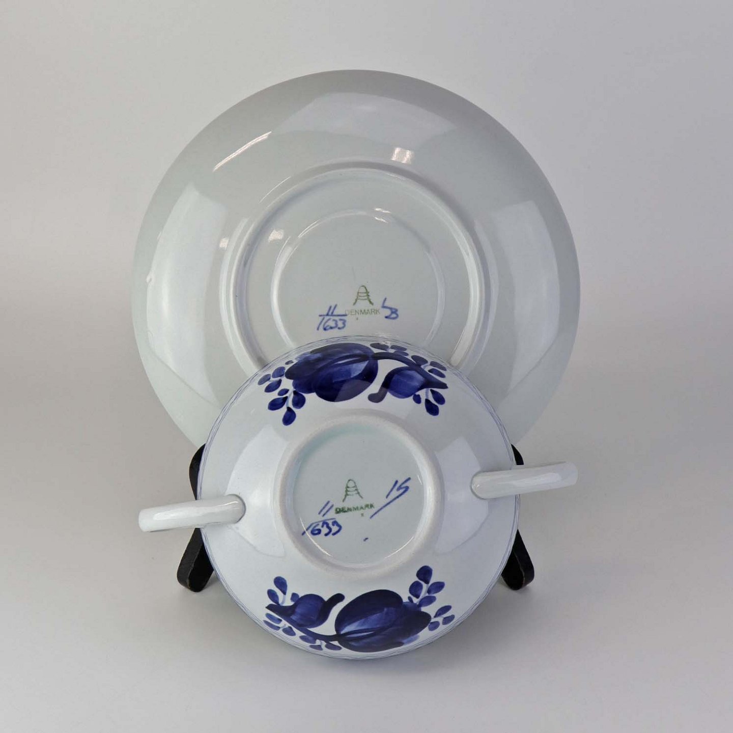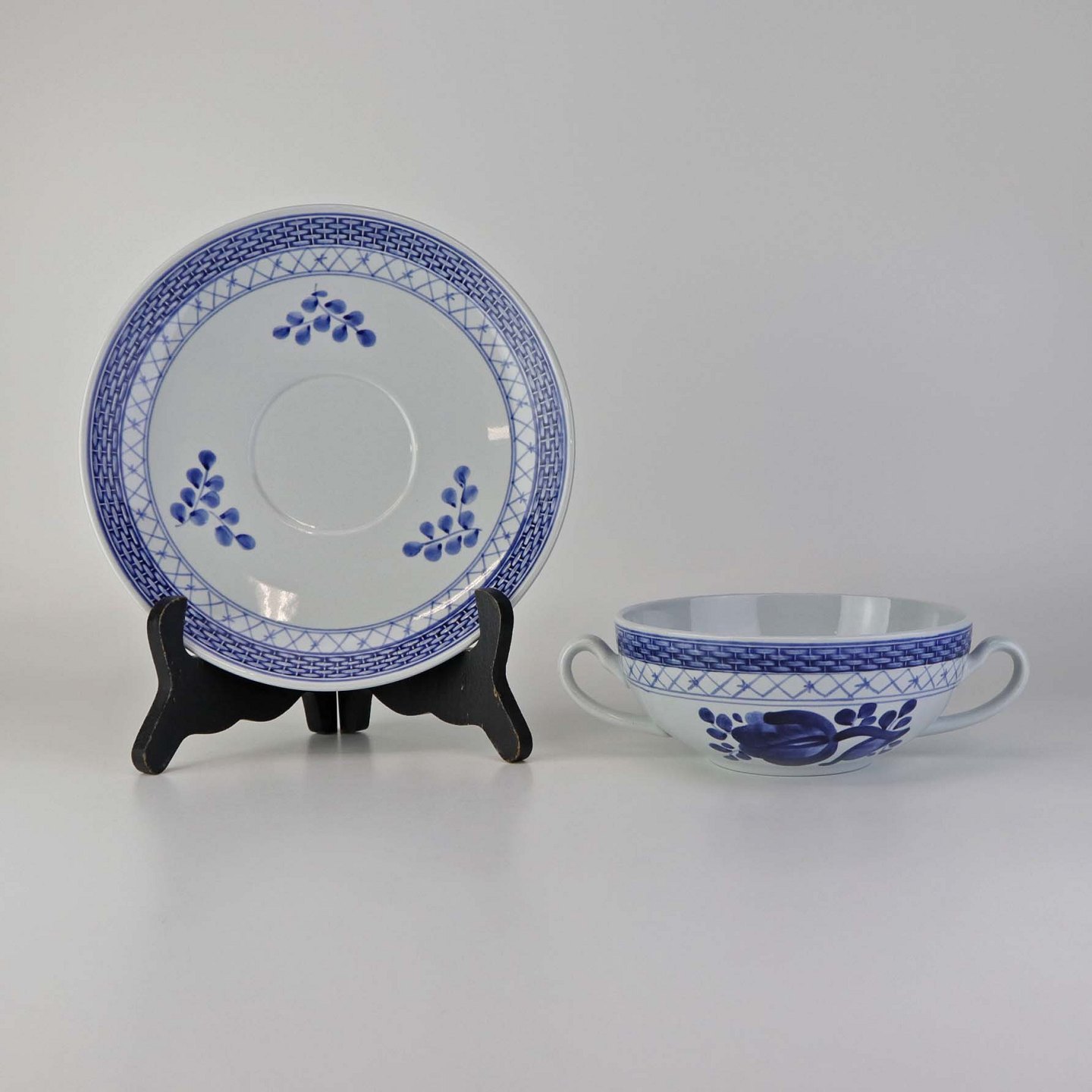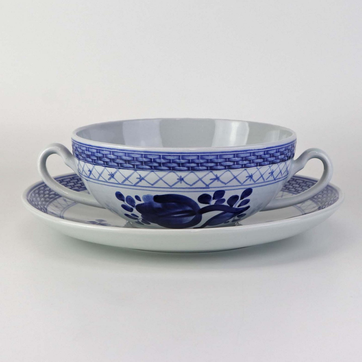 Boullionkop med underkop i fajance fra stellet Blå Tranquebar nr. 11/1633
