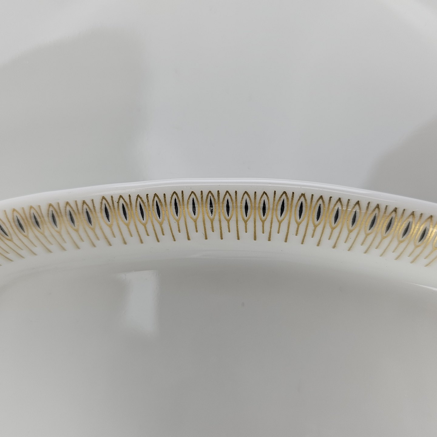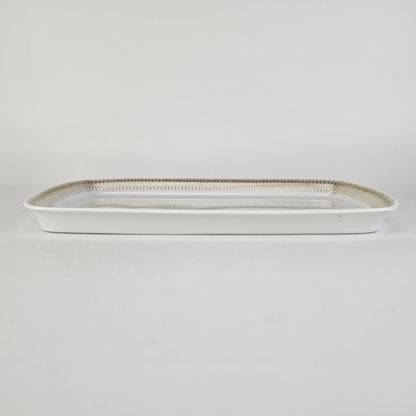 Lille rektangulært fad i hvidt porcelæn med dekoration i guld fra stellet Trend 1220