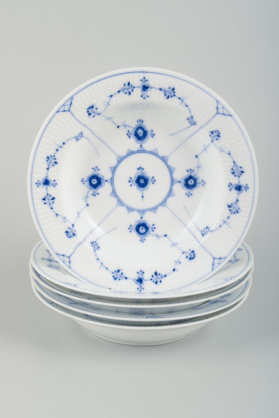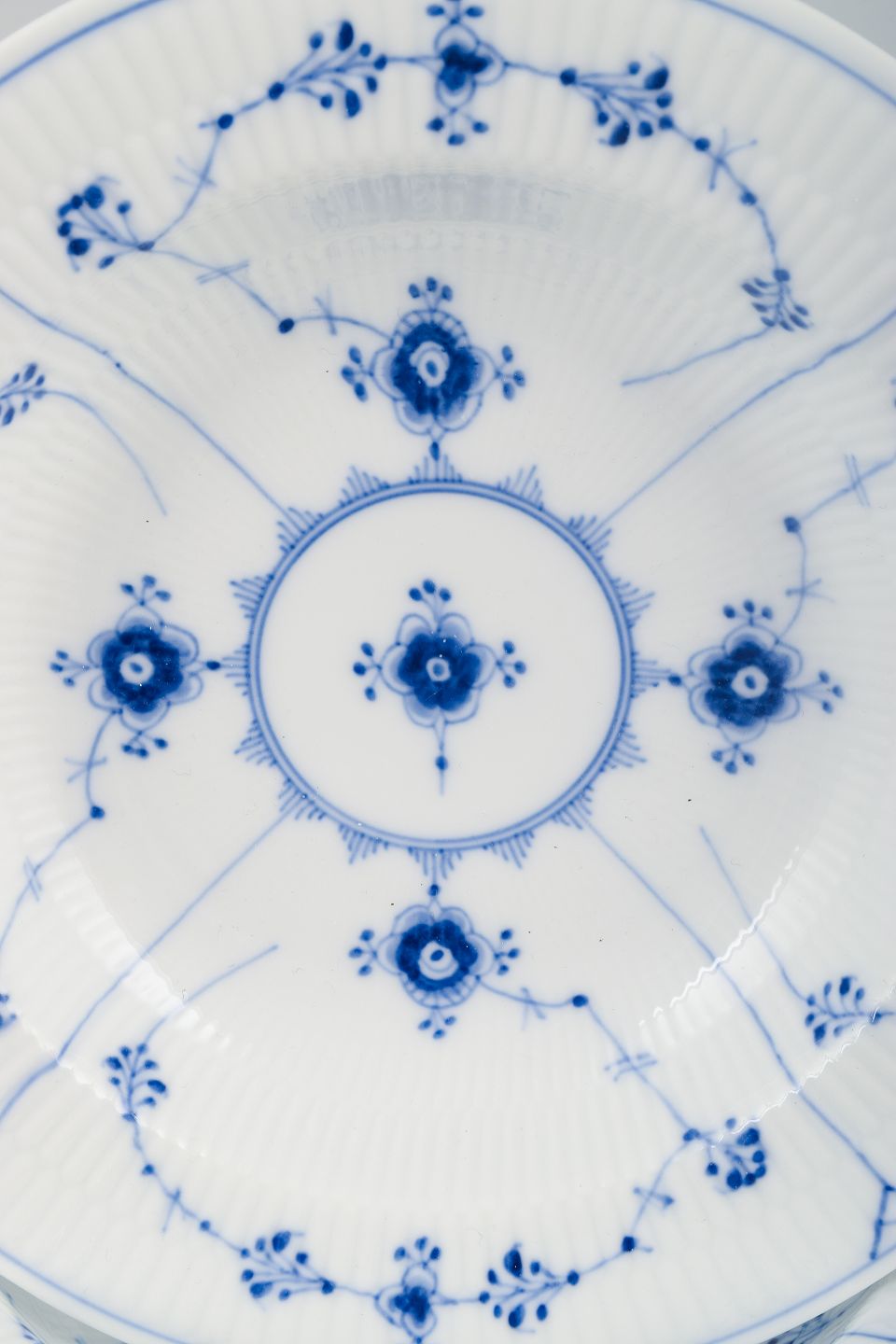 Text zugänglich auf Dänische: Royal Copenhagen Musselmalet Riflet.