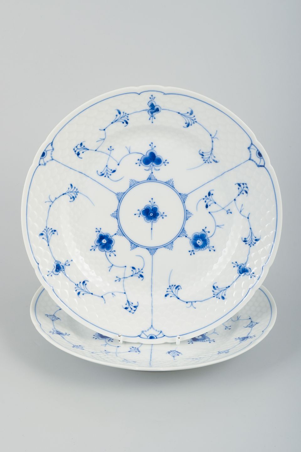 Text zugänglich auf Dänische: Bing og Grøndahl Musselmalet. To middagstallerkener i porcelæn.