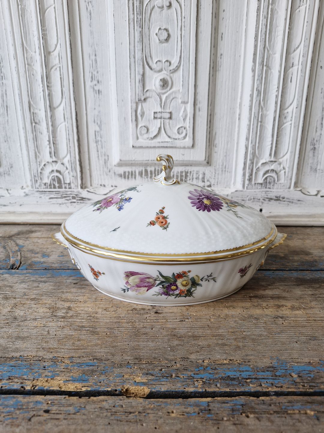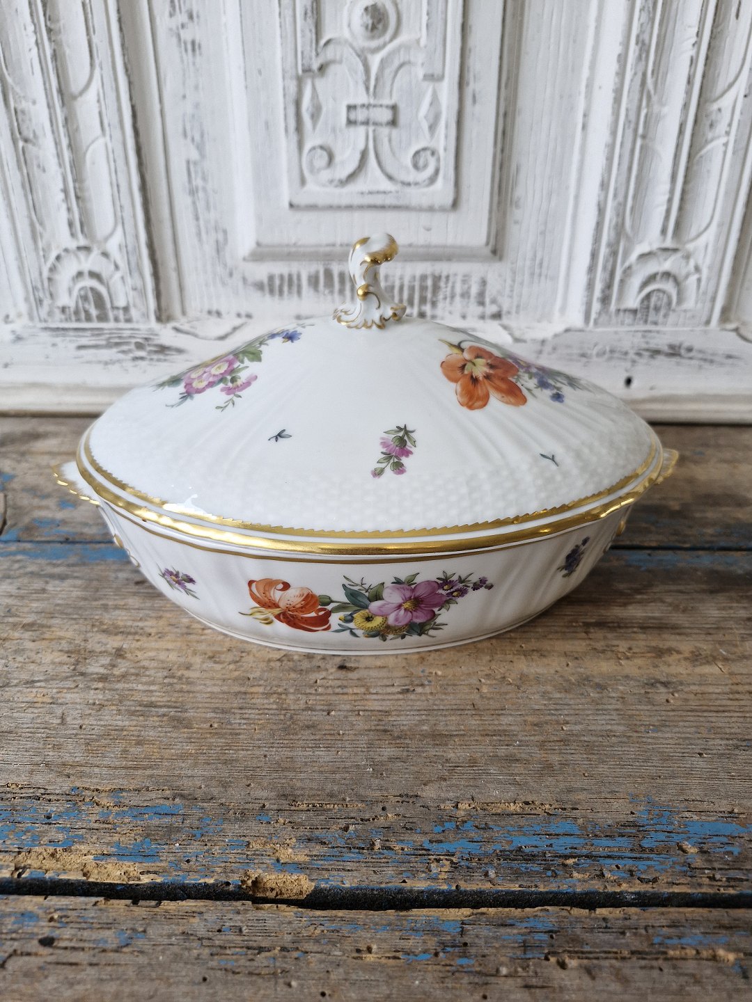 Text zugänglich auf Dänische: Royal Copenhagen Fuld Saksisk Blomst lågfad no. 1621