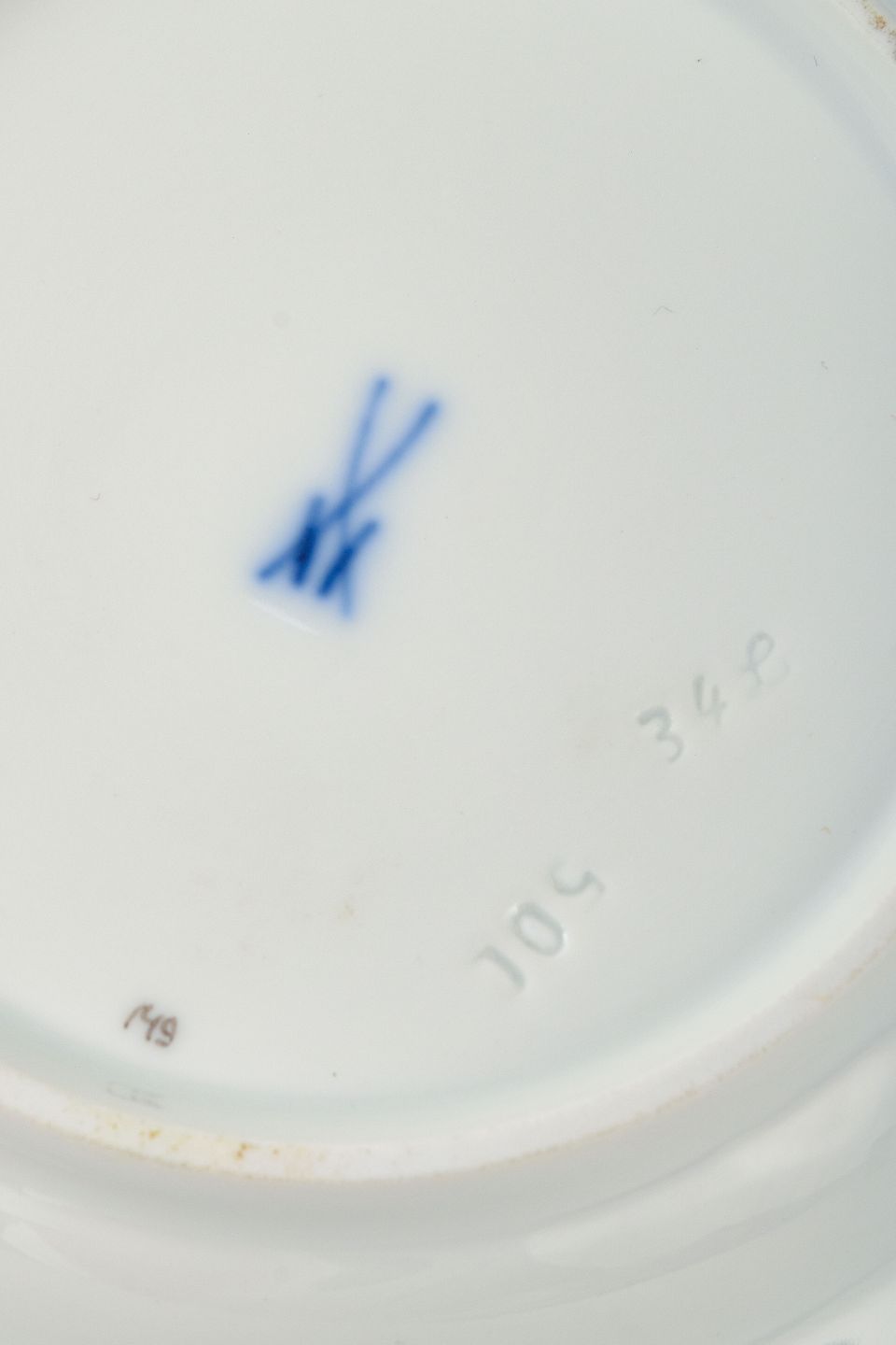 Mærkning: Blå korsede sværd under bunden