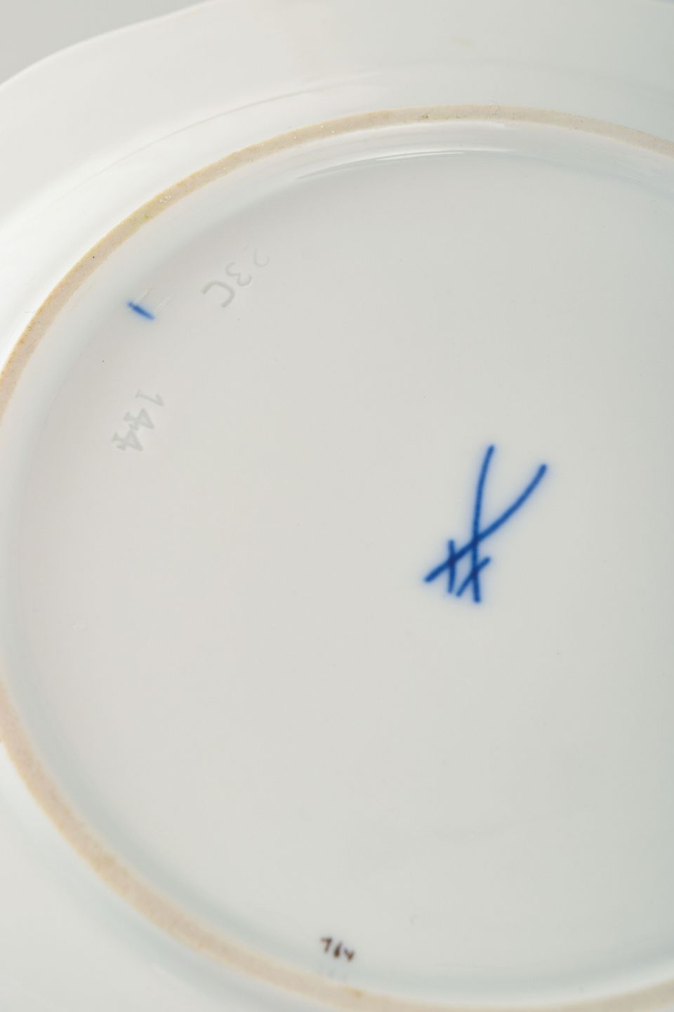 Et dekorativt eksempel fra Meissens traditionsrige stel, hvor naturens ornamentik forenes med fabrikkens klassiske håndværk.