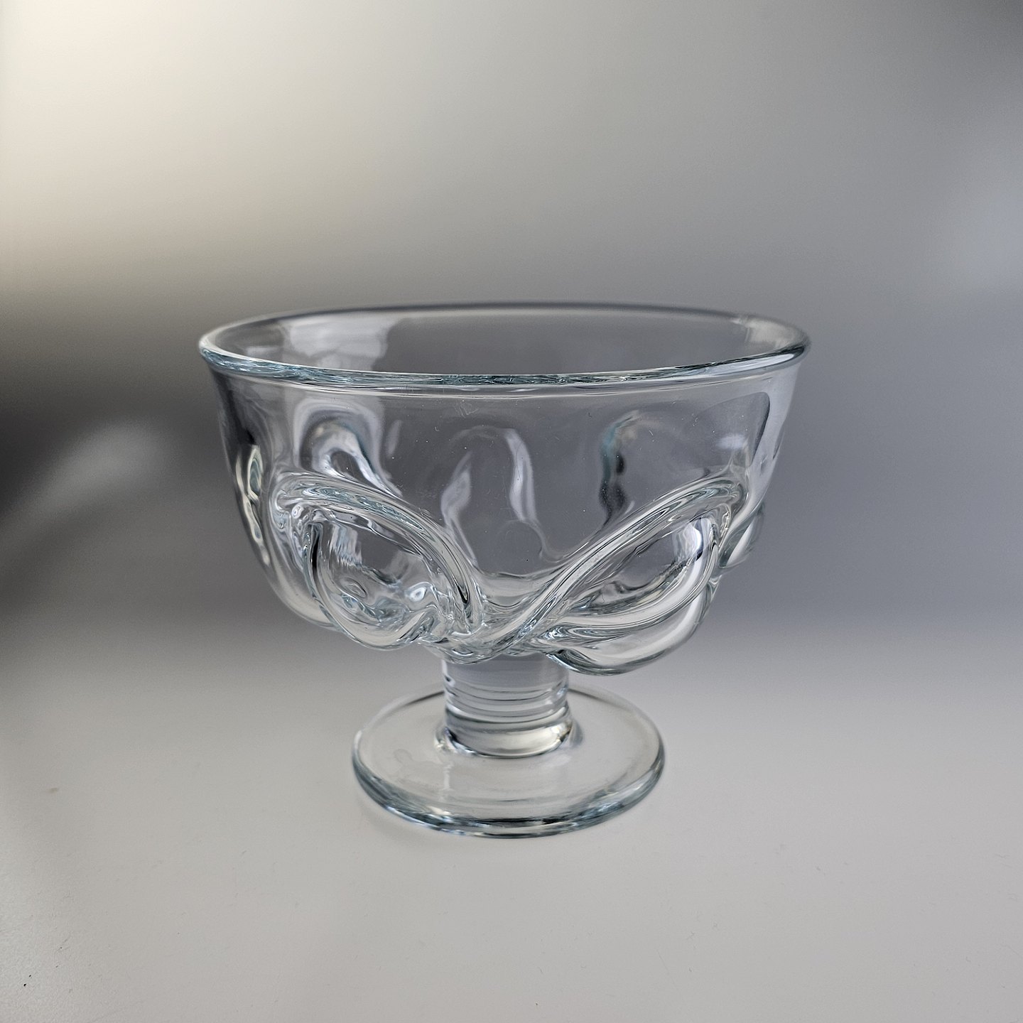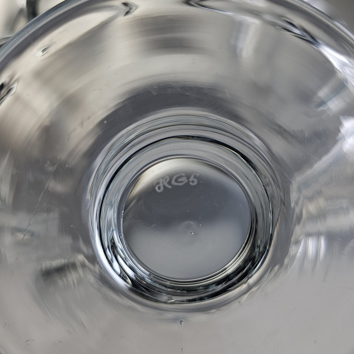 Glas skål på fod fra stellet Banquet, produceret i anledning af Holmegaard's 150 års jubilæum