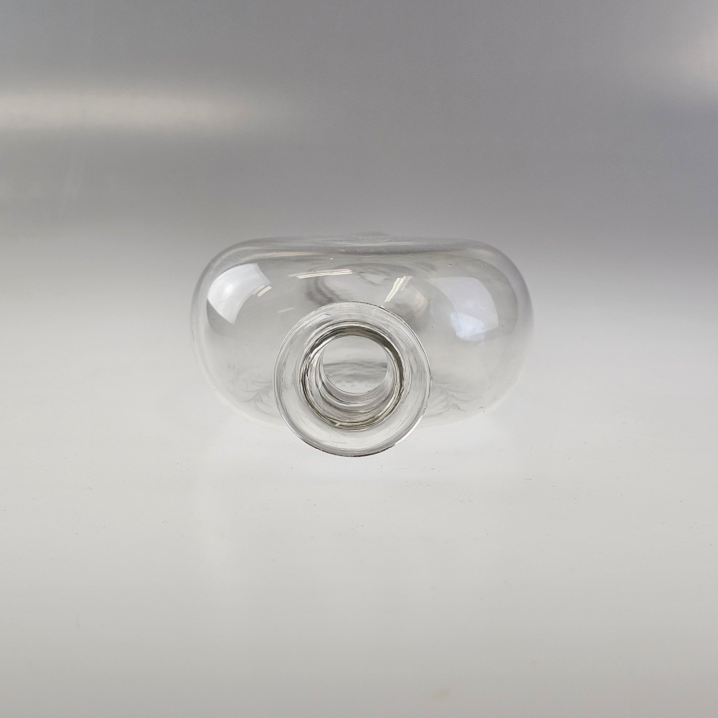 Håndblæst lommelærke i glas med motiv af blade og teksten A.P 1851, har tilhørt en glasarbejder på Aalborg Glasværk