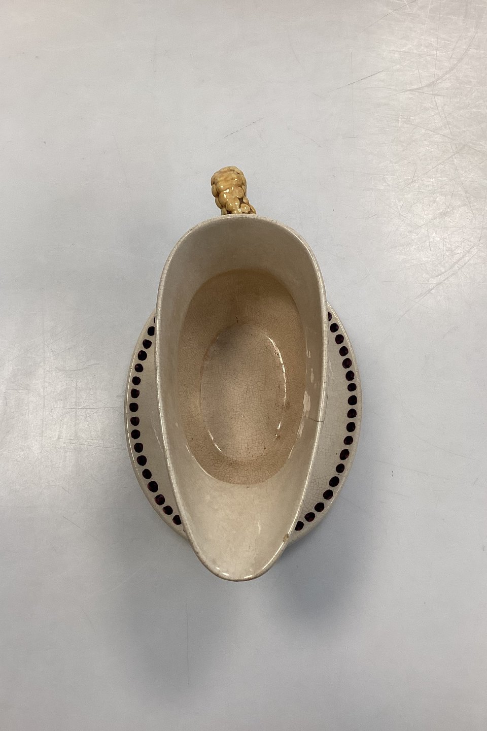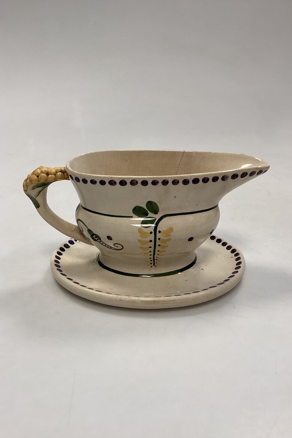 Aluminia Guldregn (Laburnum) Sauceskål med fast bund No. 10/189. Krakeleringer, hårrevne og afslag på kant, se foto. Designet af Harald Slott-Møller 1902