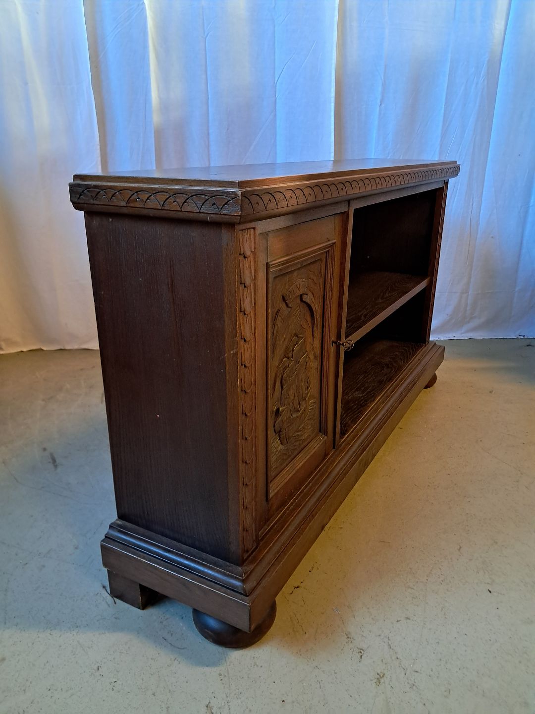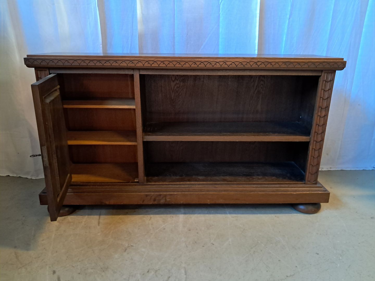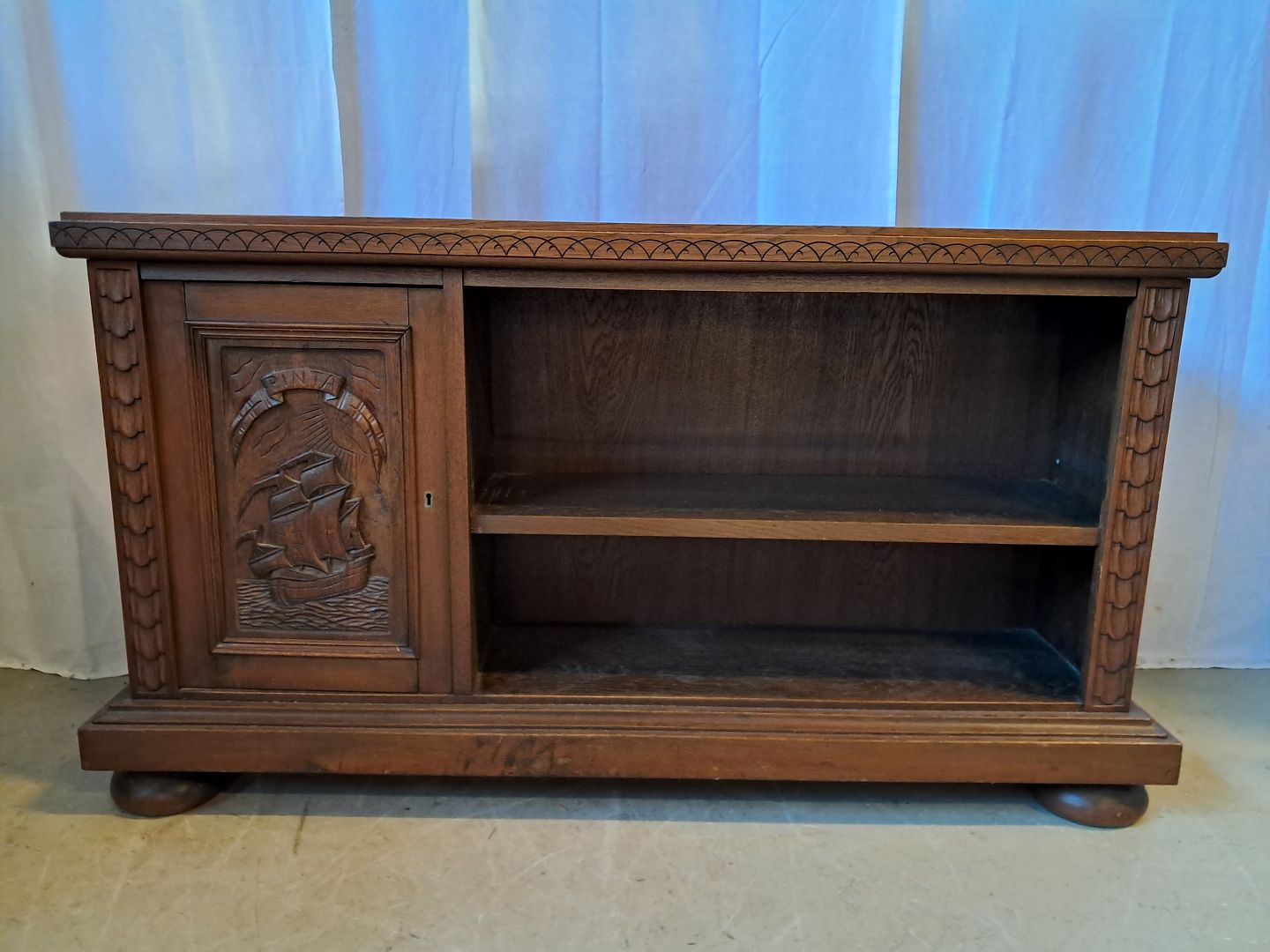 Reol i fineret egetræ, fra 1930erne.