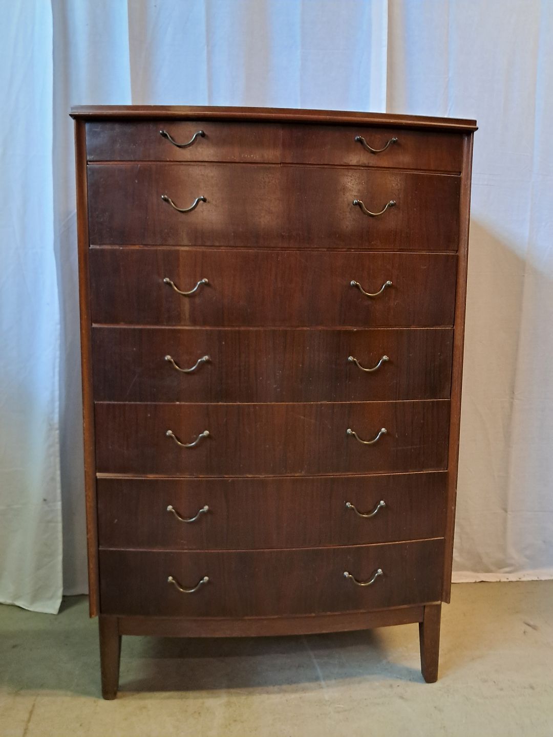 Kommode i fineret nødetræ, fra 1960erne.