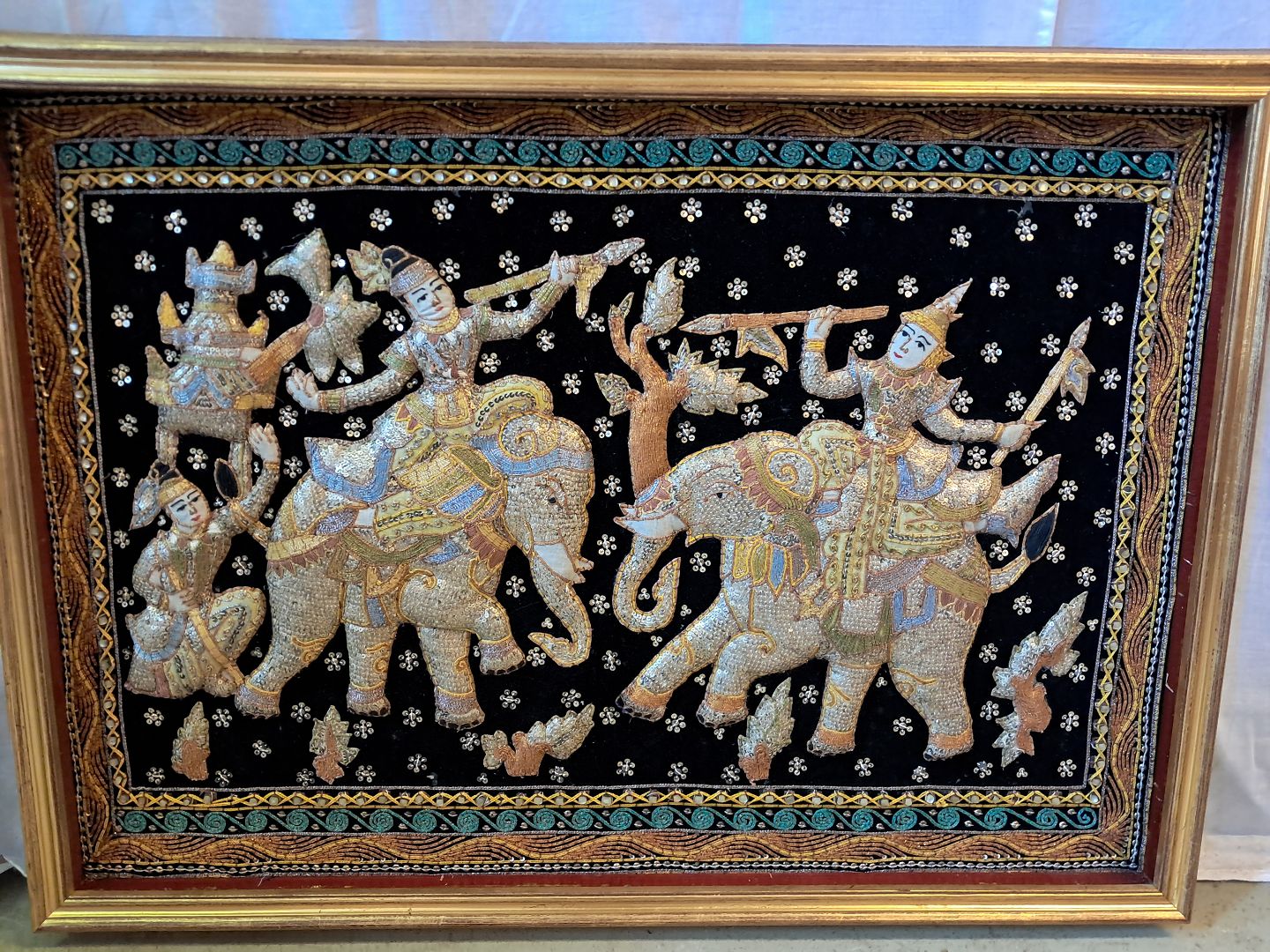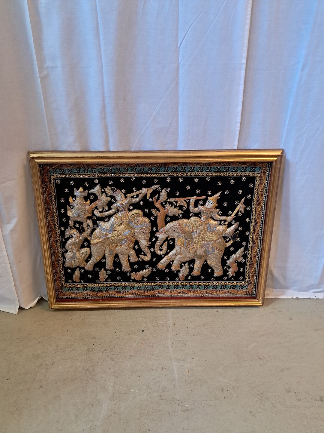 Indisk stof billede i guldmalet ramme, fra 1990erne.