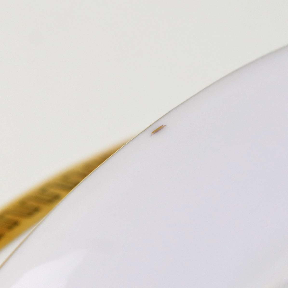 Fremstår med lettere brugsspor på guldbort, ujævnhed i porcelænet samt mindre guldstreg på undersiden af foden.