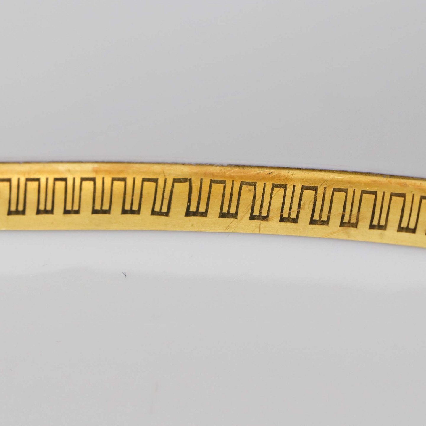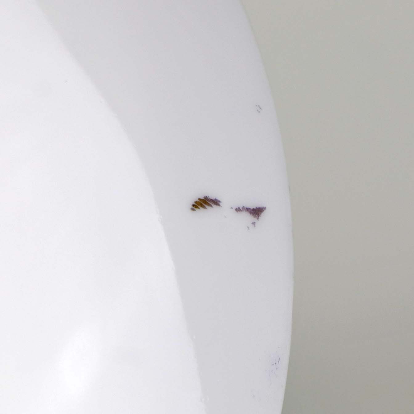 Fremstår med brugsspor på guldbort samt enkelte små ridser på indersiden og streg under glasuren på bagsiden.