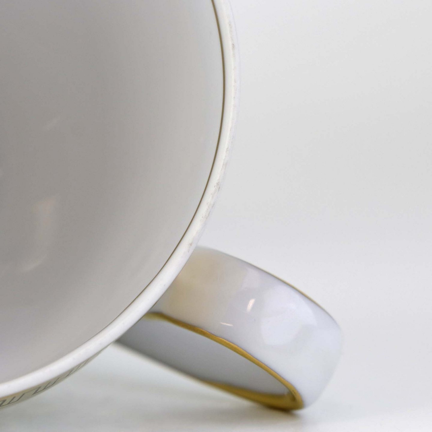 Fremstår med lettere brugsspor på guldbort samt topkanten på koppen.
