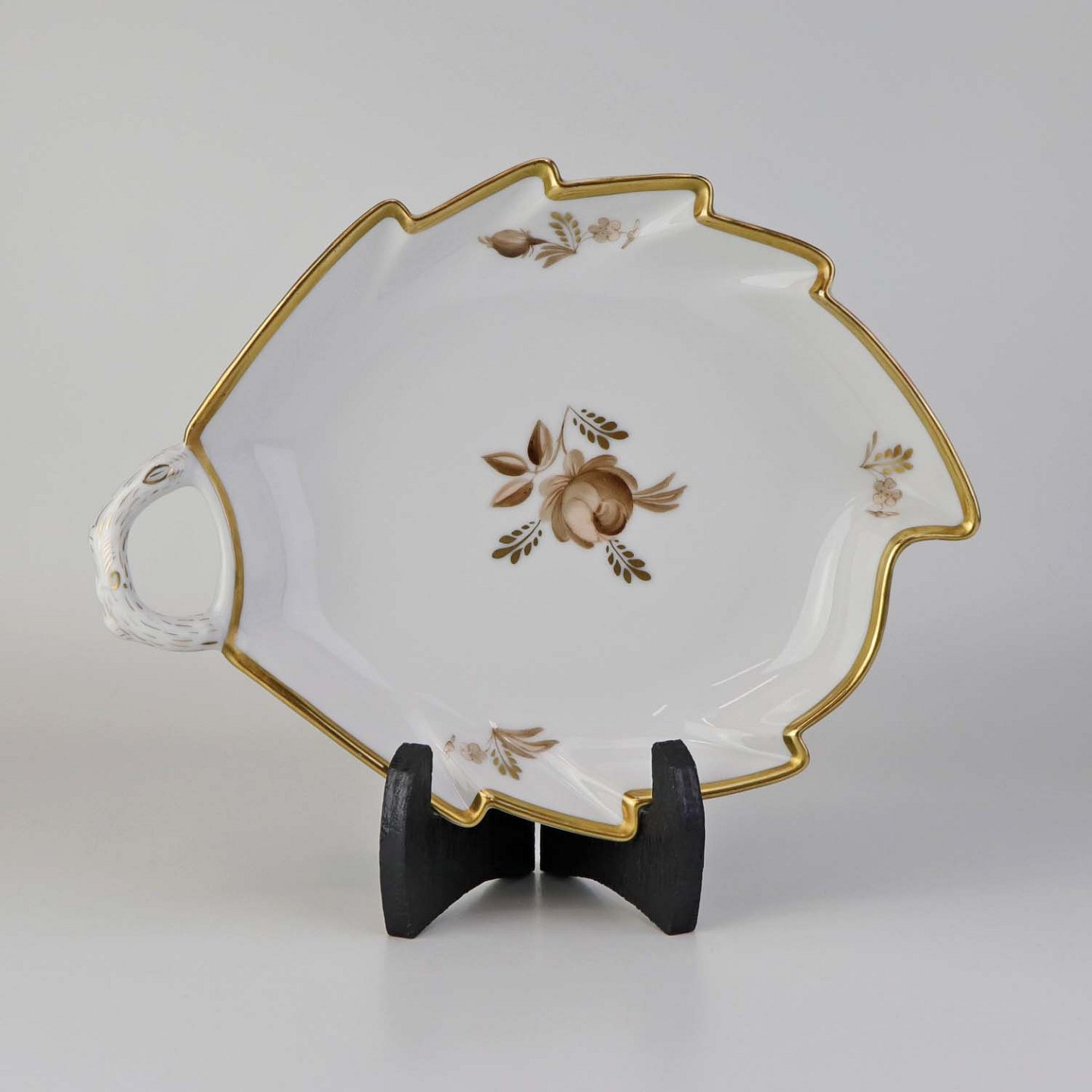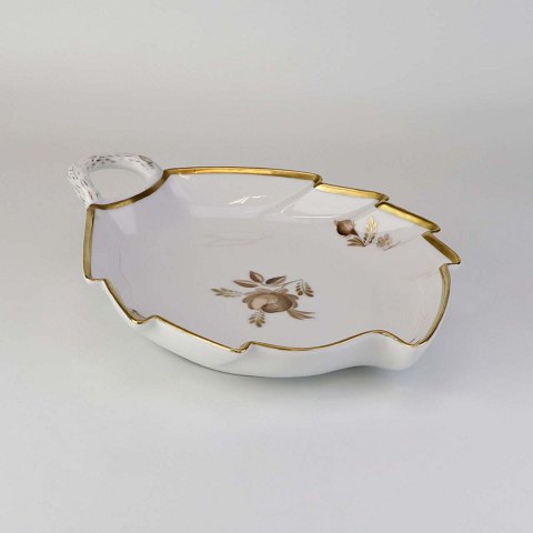 Bladformet kagefad i porcelæn fra stellet Brun rose. Nr. 688/9209