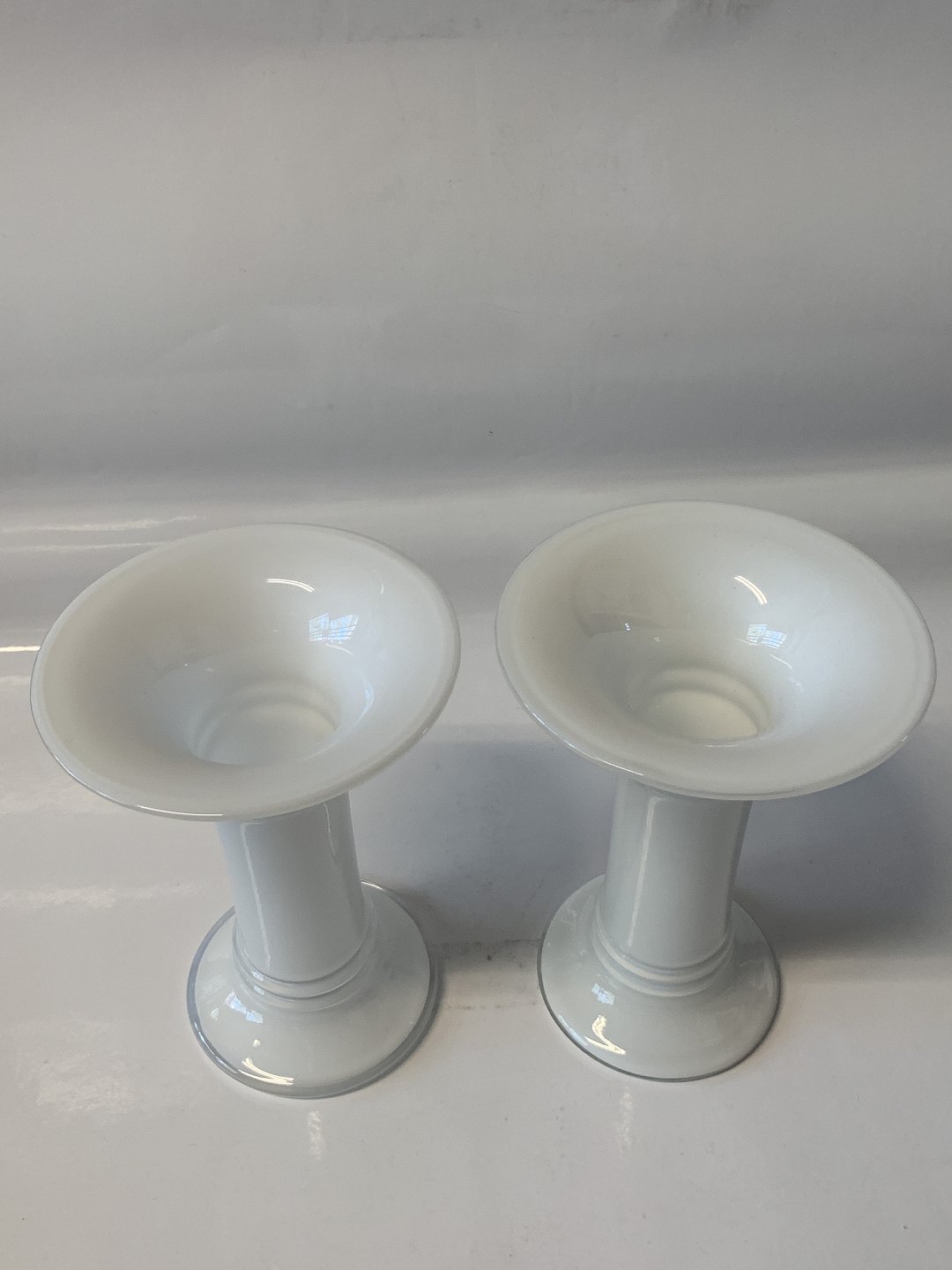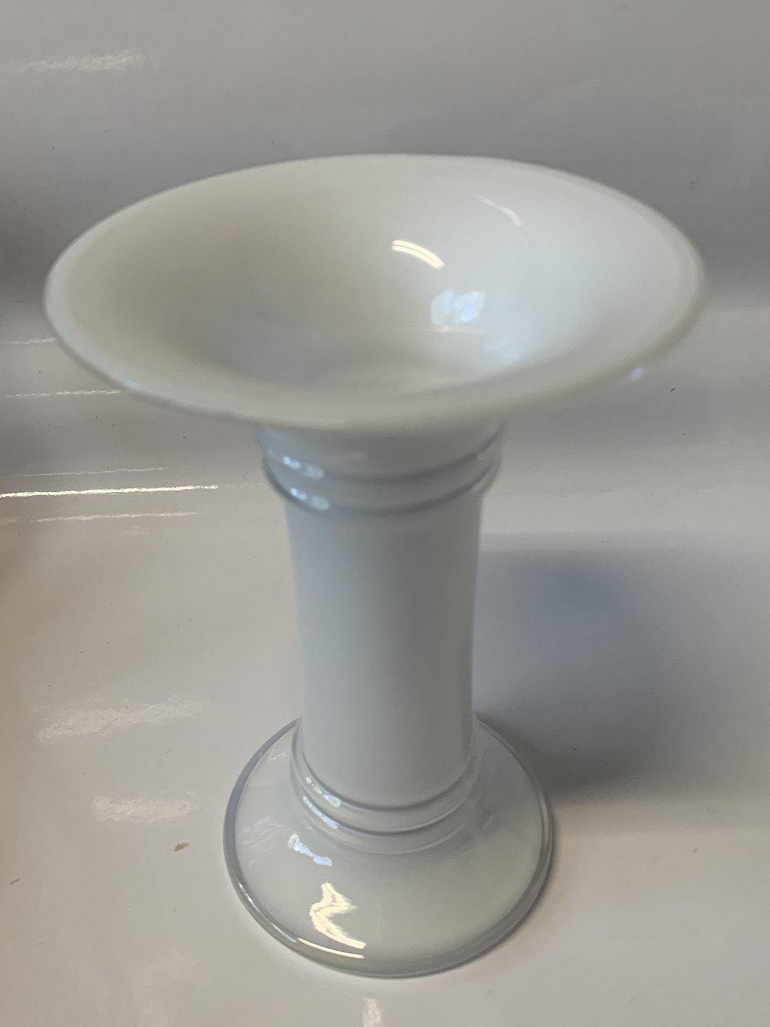 Holmegaard, MB vendbar vase/lysestage i hvidt opalglas.