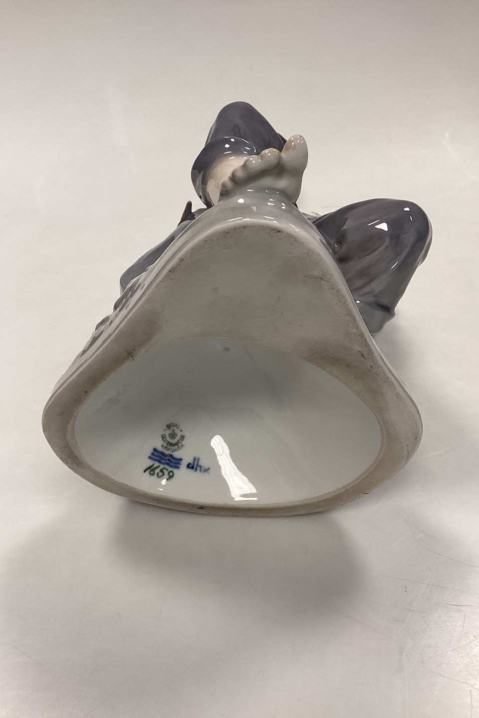 Royal Copenhagen Figur Dreng på Sten No. 1659. Designet af Christian Thomsen i 1914. 2. Sortering med brændingsfejl på ærmet, se foto.
