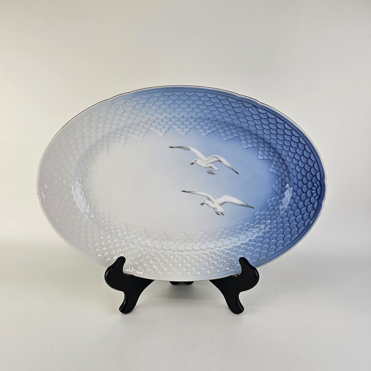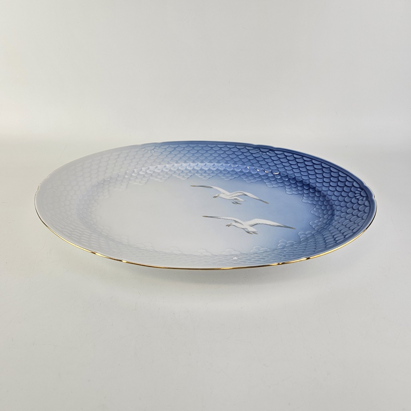 Ovalt fad i porcelæn fra stellet Mågestel med guldkant
