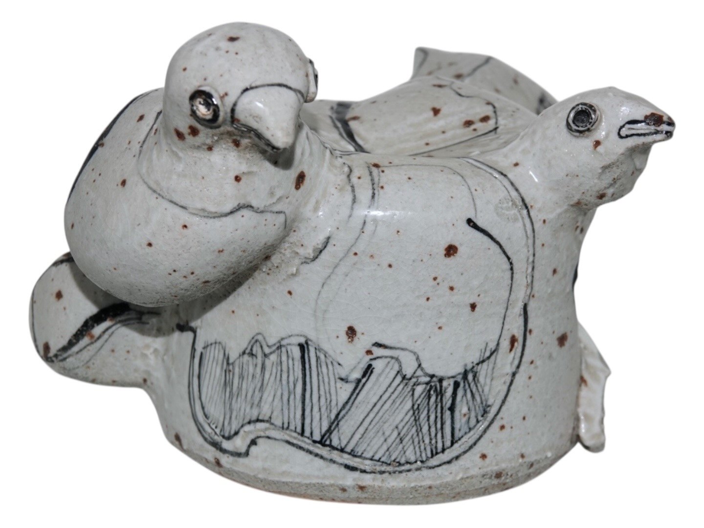 Text zugänglich auf Dänische: Bing & Grøndahl stentøjsfigur, to fugle designet af Sten Lykke Madsen.