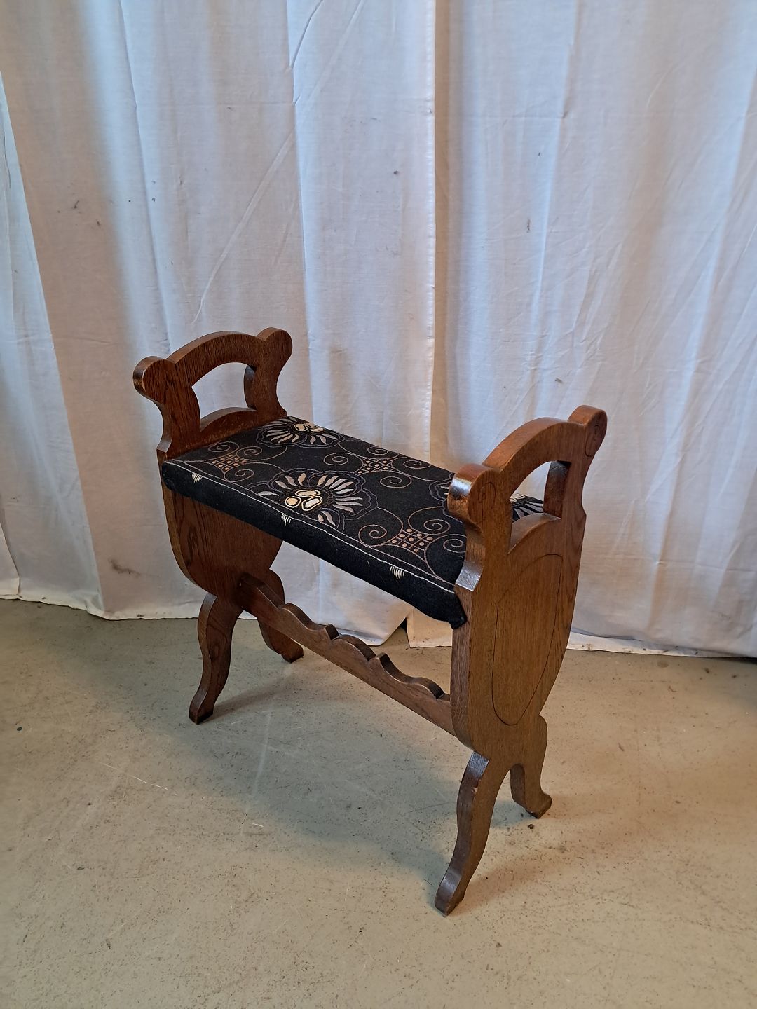 Klaverbænk i massivt egetræ, fra 1920erne.