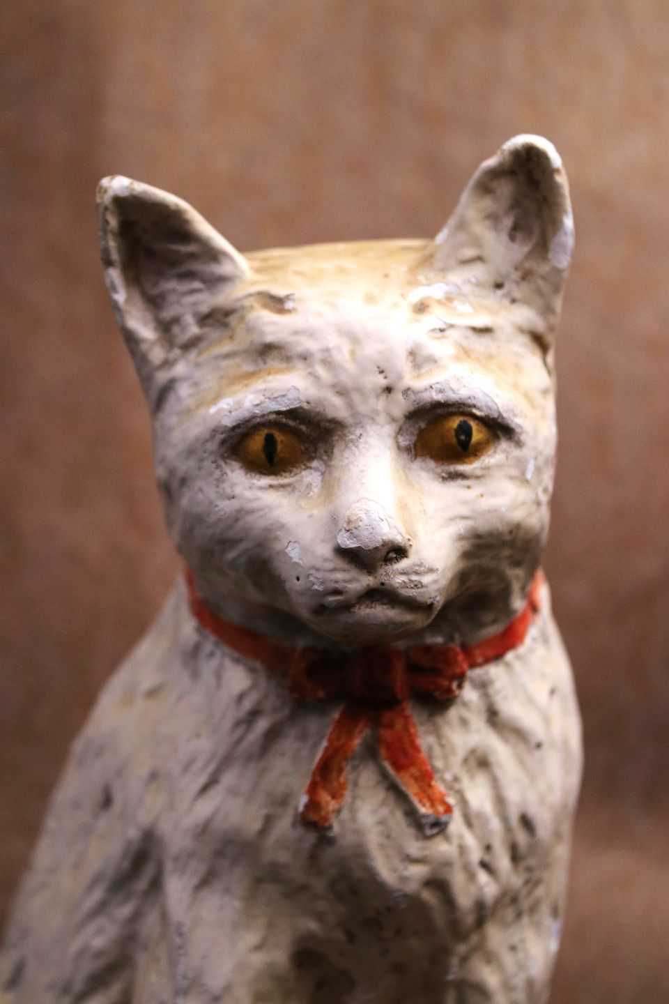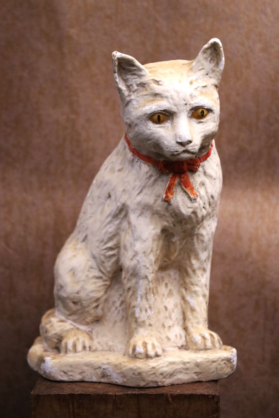 1800 tals katte figur i bemalet gips med en rigtig fin patina.