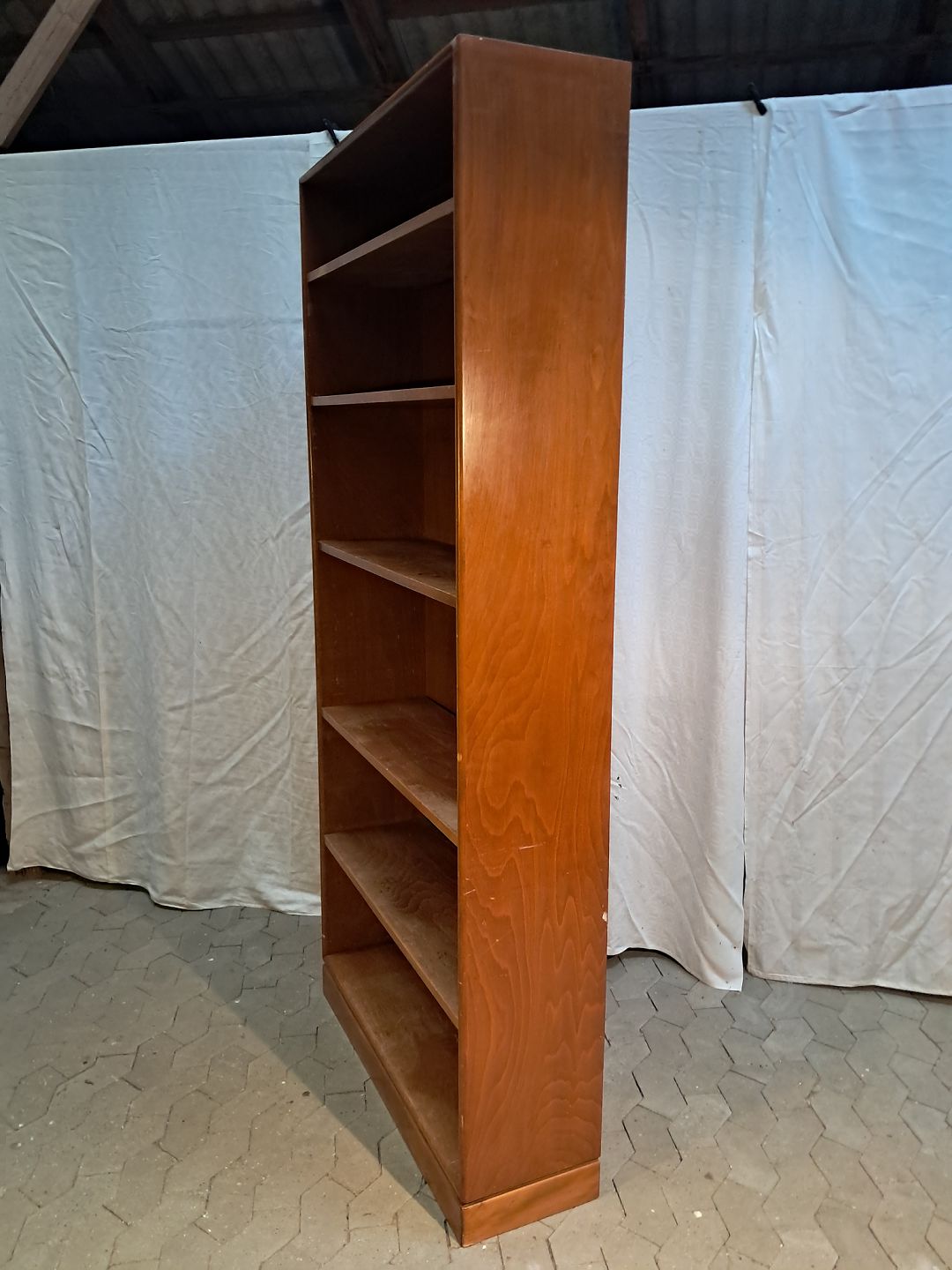 Reol i fineret bøgetræ, fra 1960erne.