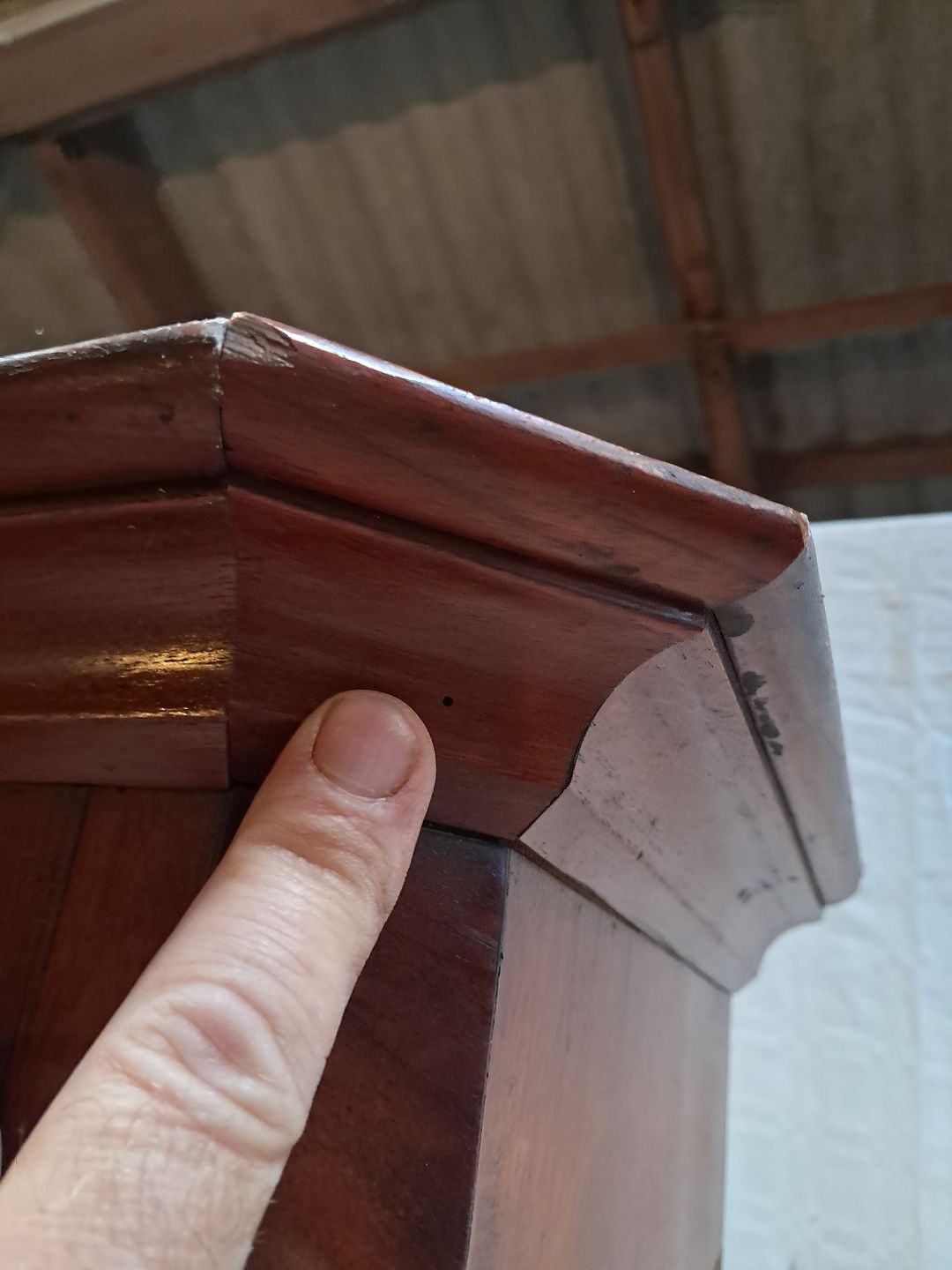 2 Delt skab i fineret mahogni, fra 1900erne.