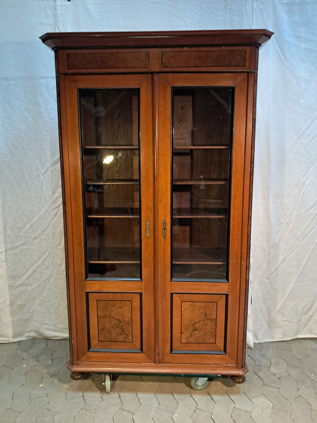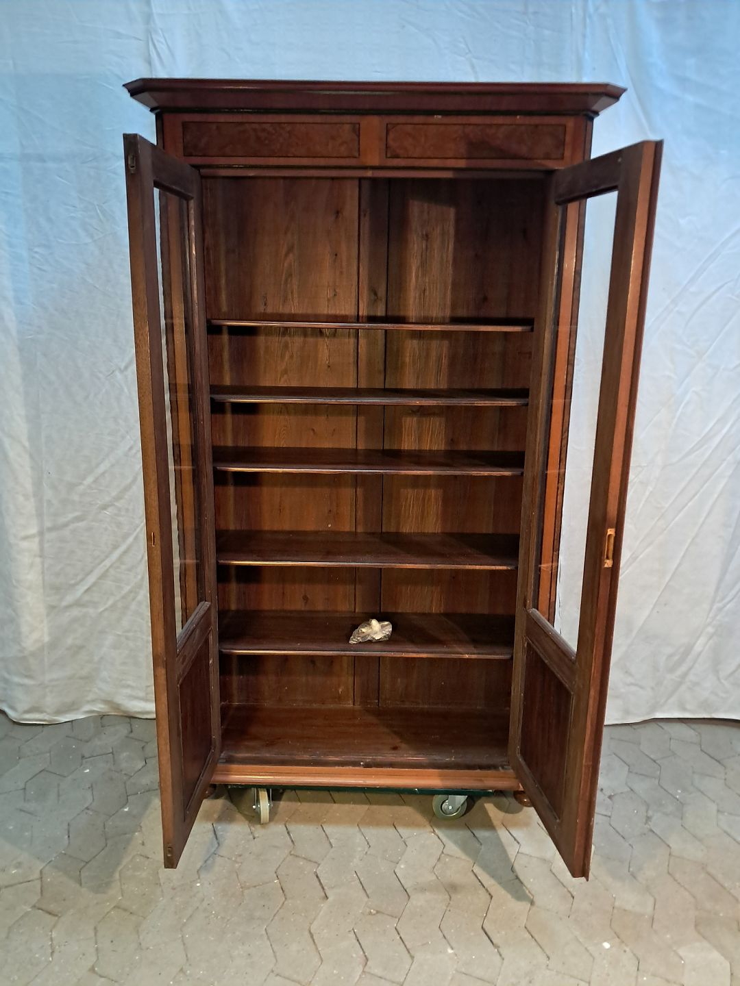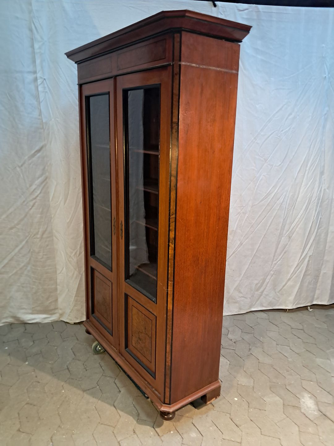 Vitrineskab i fineret mahogni, fra 1900erne.