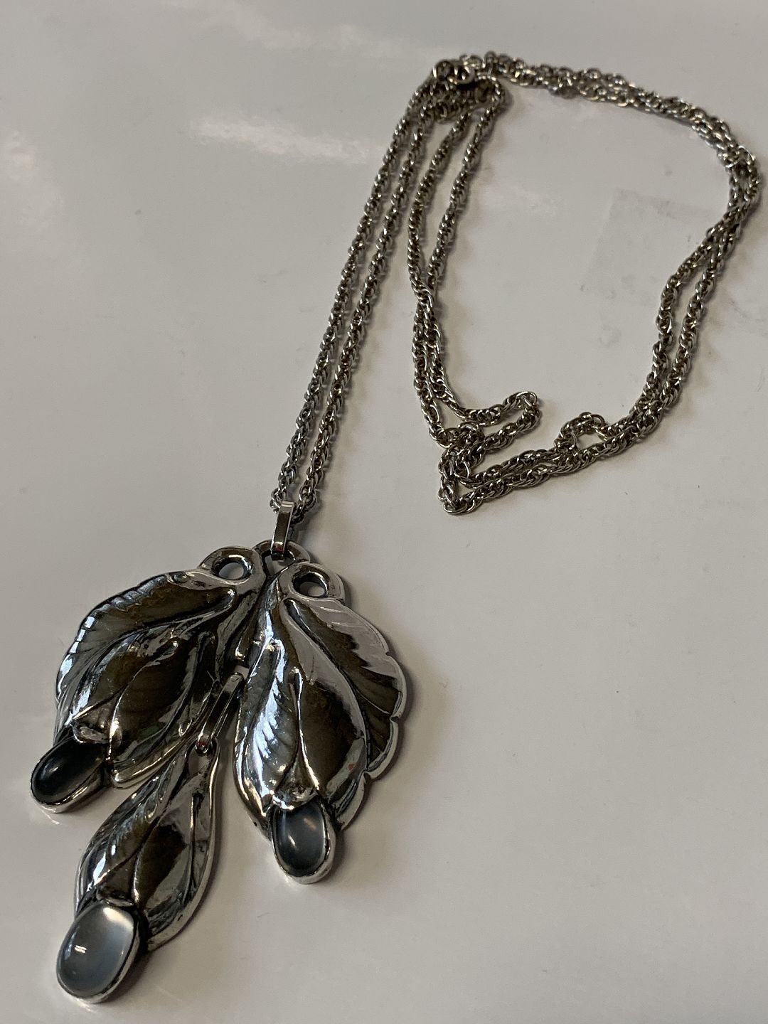 Halssmykke i jugend sølv med Månesten