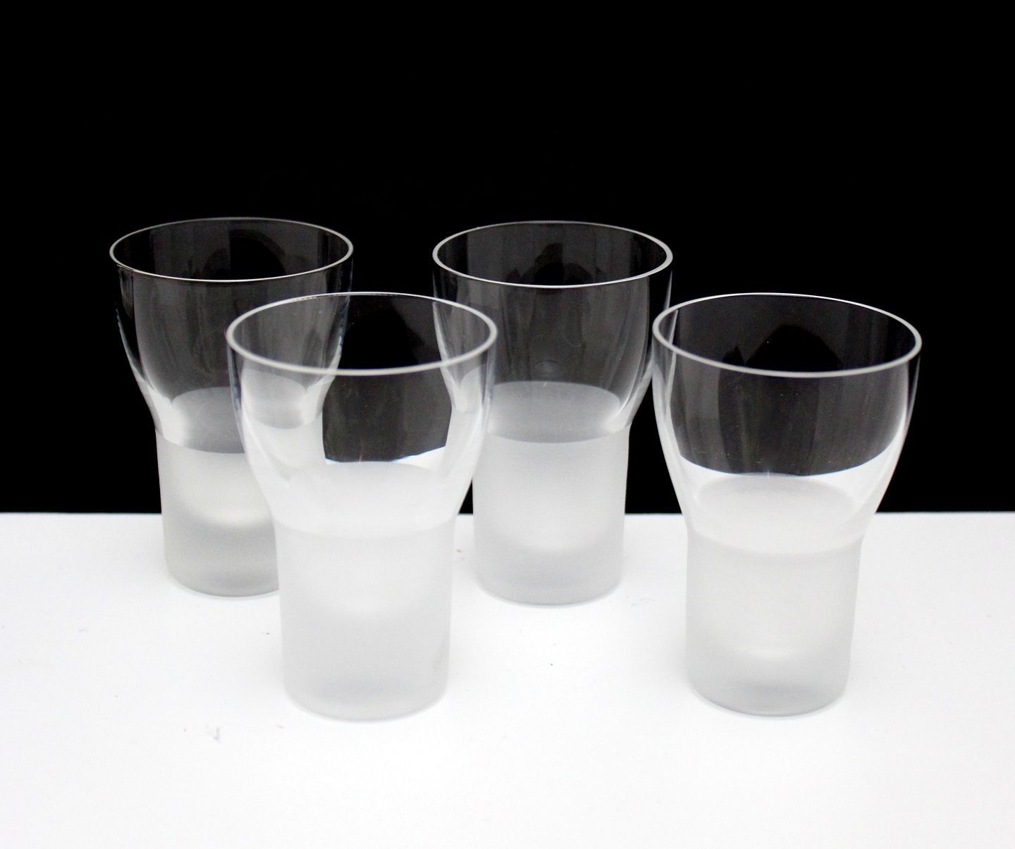 Text zugänglich auf Dänische: Iittala, Marius, Shotglas. Glaskollektionen er designet af Markku Salo i 1985 og omfatter også en karaffel, dessertglas, vin- og ølglas. Marius-serien var i produktion indtil år 2000. Glassene er mundblæst i transparent glas i toppen og sandblæst i bunden. Højde 6,5 cm. Øverste diameter 4,5 cm. Bunddiameter 3 cm. Fin stand. Pris for 4 stk. 350 kr.