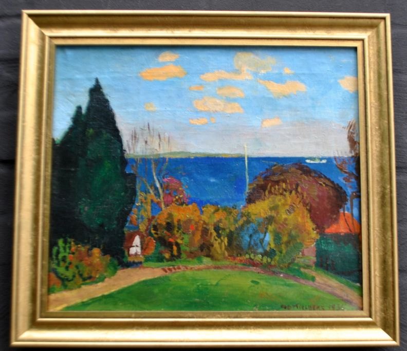 Kielberg, Ole (1911 - 1985) Dänemark: Blick auf den Öresund, 1935. Öl auf Leinwand. Signiert: Ole Kielberg 1935. H: 35,5 cm. B: 39,5 cm.