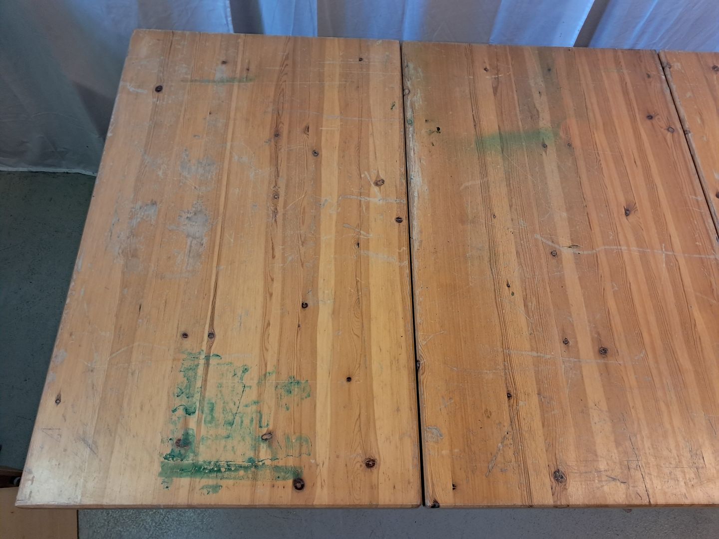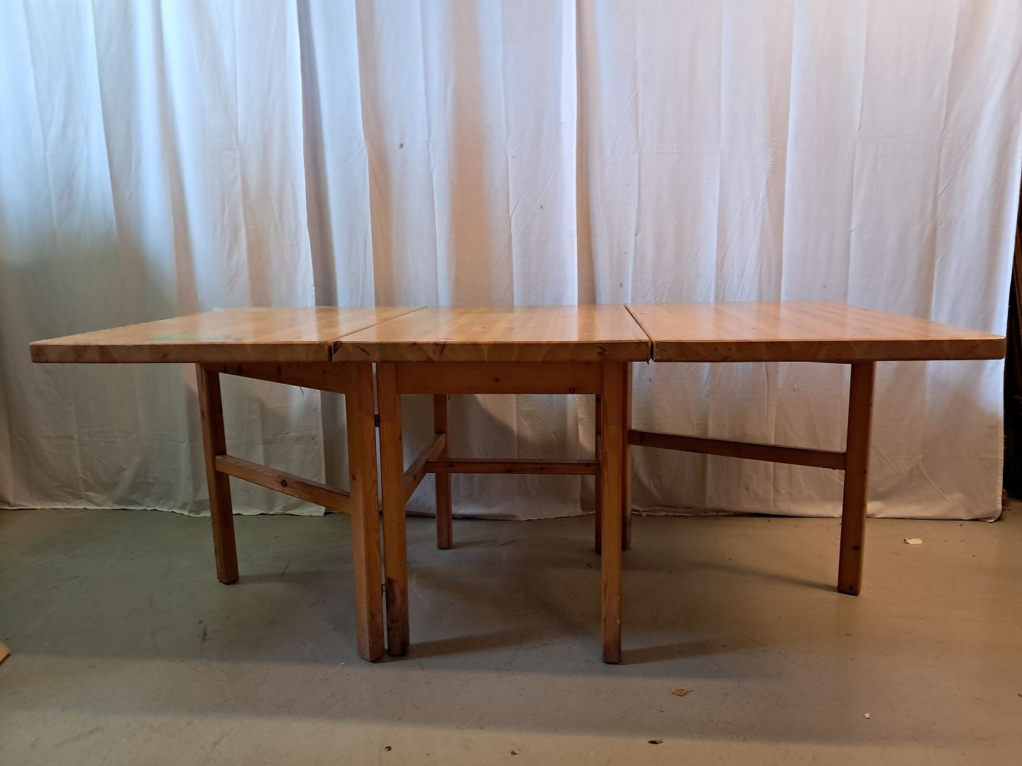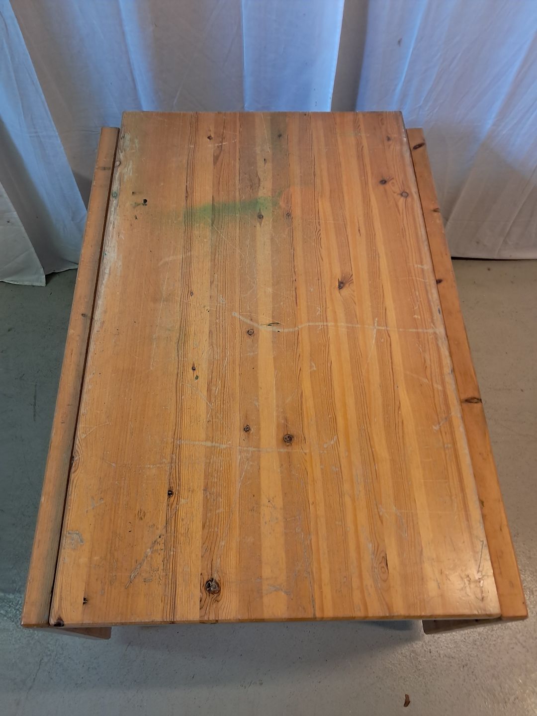 Text available in Danish: Bord i massivt fyrretræ, fra 1980erne.