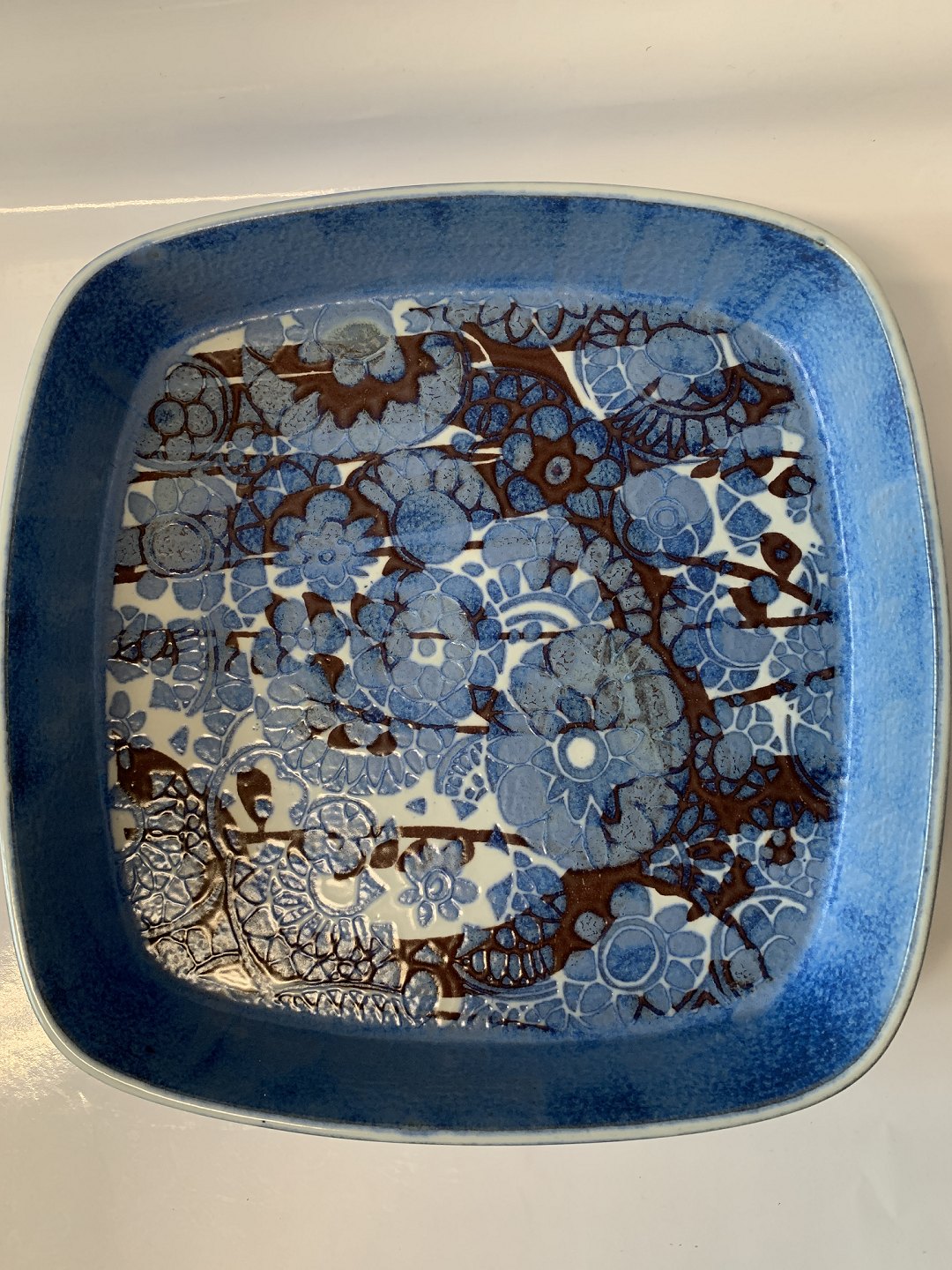 Royal Copenhagen Fajance Baca, stort blåt fad.