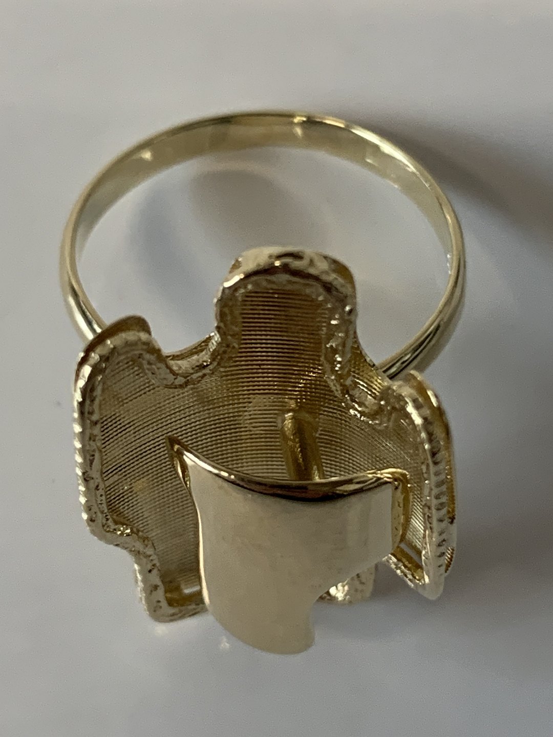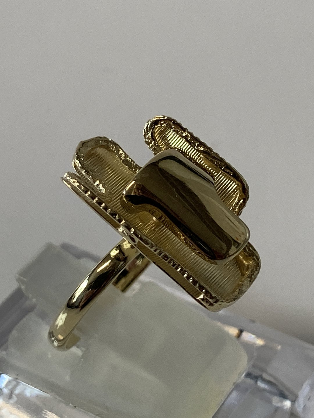 Denne damering i 14 karat guld, er ganske unik. Det tidløse design giver ringen et levende og dynamisk look. Ringen vil være oplagt som hverdagsring, hvor den vil kunne kombineres med nærmes alt slags tøj. Da ringen er noget fyldig, kan den med fordel kombineres med andre mindre ringe og håndsmykker.