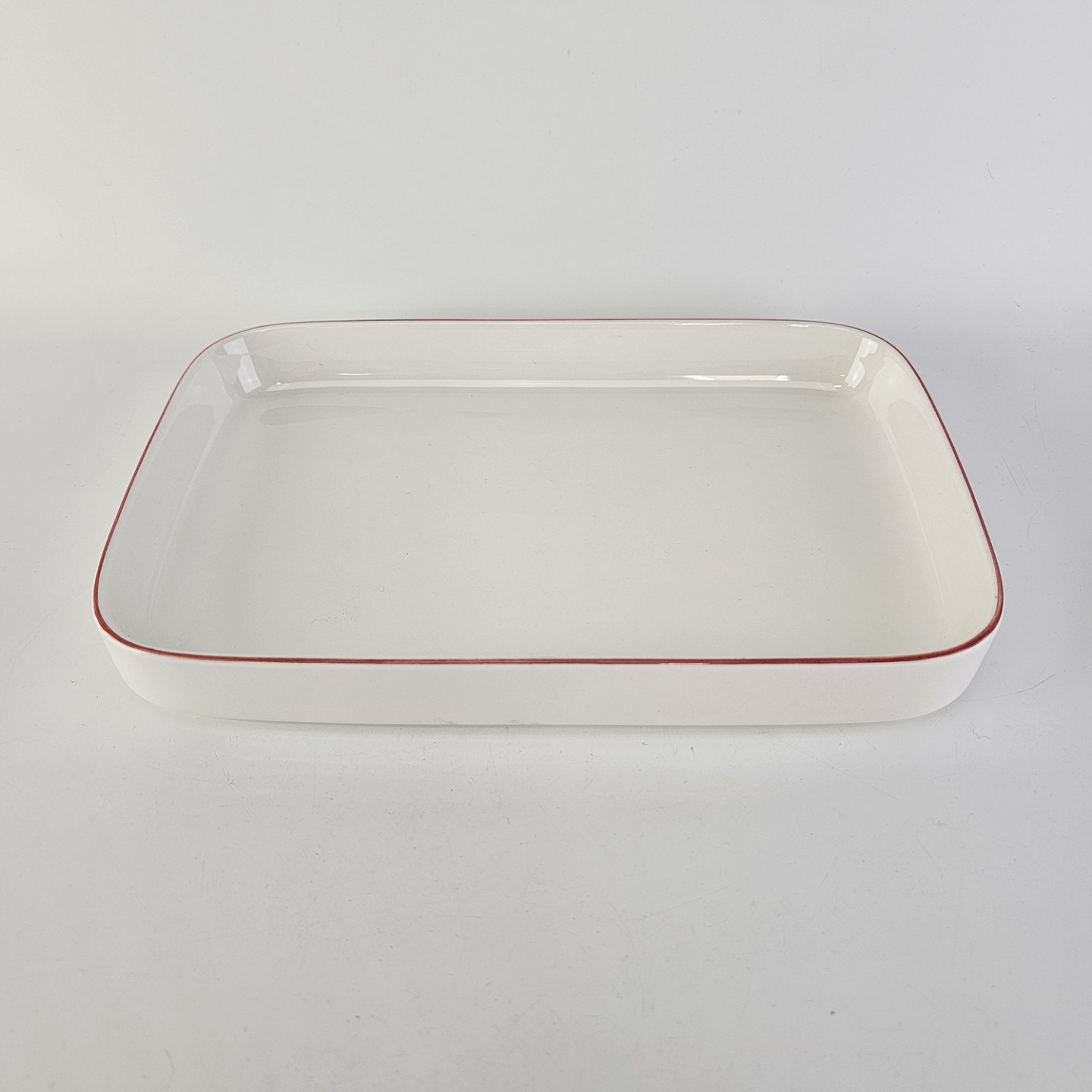 Aflangt fad i fajance fra stellet 4 All Seasons med rød kant