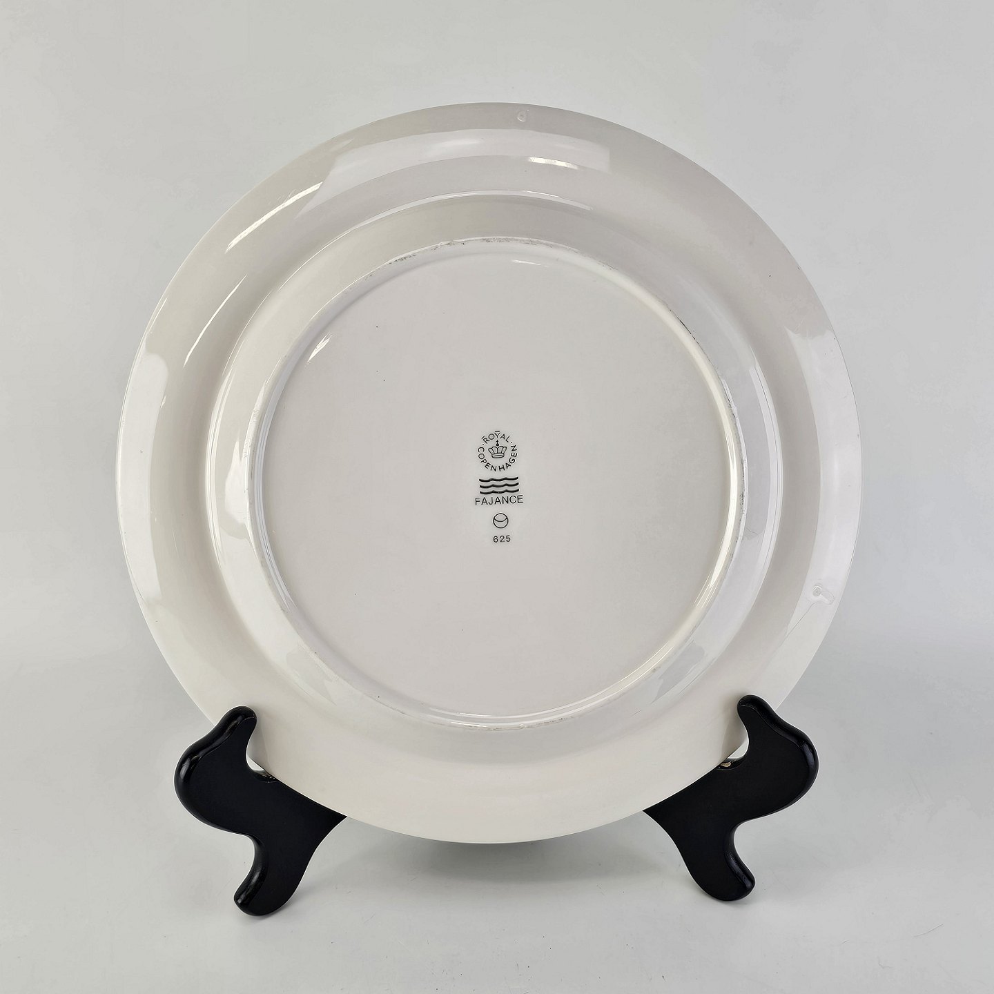 Stellet er fremstillet i glat hvid fajance med dekoration af en simpel stribe i forskellige farver